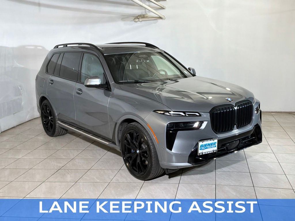2023 BMW X7 Skyscraper Gray Metallic has AWD, balance of factory warranty, clean Carfax & one owner, panoramic moonroof, 360 degree camera, blind-spot monitors, lane keeping assist, adaptive headlights, touchscreen controls, navigation, backup camera, Apple CarPlay, USB port, Android Auto, Bluetooth, premium sound, Sirius XM, leather interior, heated/cooled seats, push button start, 3rd row seating, 2nd row captain chairs, running boards, and the M Sport Professional Package. At Biener Ford, we now price our cars at or below the market price to aid in transparency, attract more buyers, and make purchasing a car or truck easier for our customers. Long-term financing and low interest rates are available for qualified buyers with approved credit. Biener Ford proudly serves Nassau, Suffolk, Queens, and the entire NYC Metro Area.