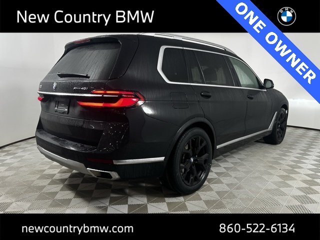 2023 BMW X7 xDrive40i. Finished in Black Sapphire Metallic with a rich Tartufo leather interior, this 2023 BMW X7 xDrive40i delivers flagship BMW luxury with three-row versatility and refined performance. Powered by a 3.0L TwinPower Turbo inline-6 and BMWs intelligent xDrive all-wheel drive system, the X7 offers smooth power delivery, confident handling, and exceptional ride comfort. This X7 is well equipped with the Executive Package, Climate Comfort Package, and Connected Package Pro, combining premium luxury appointments, advanced climate features, and seamless connectivity throughout the cabin. Designed to balance comfort and control, the X7s air suspension and advanced drivetrain provide a composed ride whether cruising or fully loaded with passengers. The interior reflects BMWs flagship attention to detail, offering upscale materials, spacious seating for seven, and thoughtful comfort features throughout all three rows. Advanced BMW technology keeps you connected and informed, with intuitive controls and premium convenience features enhancing every drive. A comprehensive suite of safety technologies supports confident driving with enhanced awareness and protection for all occupants.