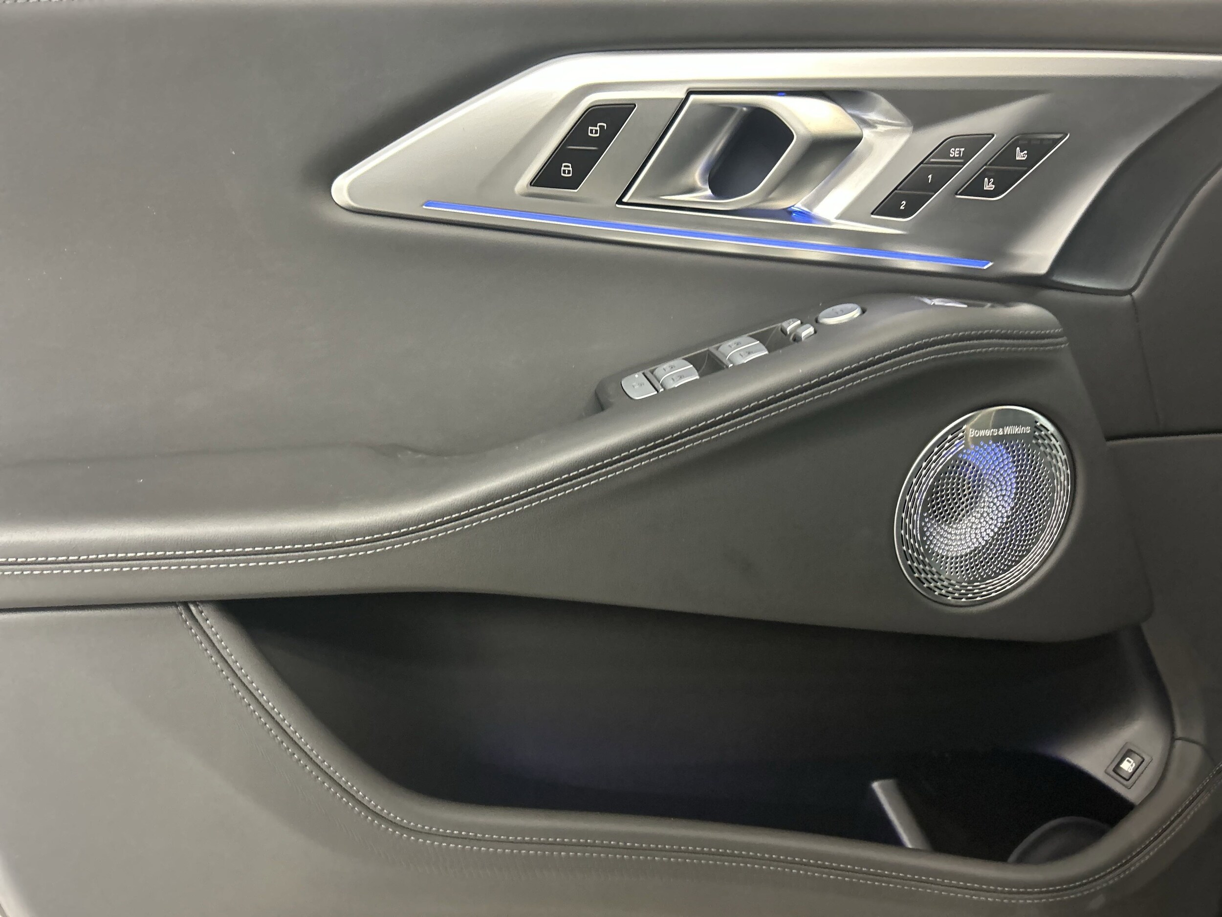 The 2023 BMW XM is a luxury SUV with a plug-in hybrid electric motor. It features advanced technology, including a navigation system, lane departure warning, and a Bowers & Wilkins sound system. The vehicle offers a comfortable ride with leather upholstery and heated seats.