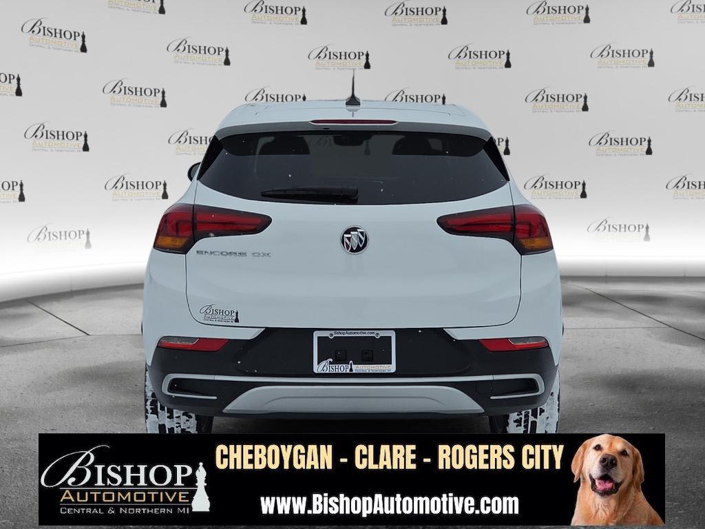 Ready to elevate your commute? This 2023 Buick Encore GX Preferred in Cheboygan, MI delivers style, efficiency, and modern safety at the best price in the area. With only 21,213 miles, this low-mileage SUV pairs a fuel-sipping 3-cylinder 1.2L gasoline engine with smooth front-wheel drive for confident daily driving and excellent fuel economy. Step inside to find comfortable leather seats that create a refined cabin environment, plus convenient tech like hands-free Bluetooth for seamless phone calls and audio streaming. Safety-focused drivers will appreciate Lane Keep Assist and Lane Departure Warning working together to help you stay centered and aware on every trip. The vehicle also carries a CARFAX Clean Report, giving added peace of mind about its history. This Preferred trim balances premium features with practical value — ideal for families, commuters, or anyone seeking a compact SUV with smart amenities. Whether you're navigating city streets or heading out on longer drives, the Buick Encore GX offers nimble handling and a quiet, upscale interior. Located in Cheboygan, MI and priced to move, this 2023 Buick Encore GX Preferred is competitively listed as the best-priced option nearby. Low mileage, strong fuel economy, leather seating, modern connectivity, and proven safety technologies make this a standout choice. Schedule a viewing or test drive today and experience why this Buick Encore GX is an exceptional value.