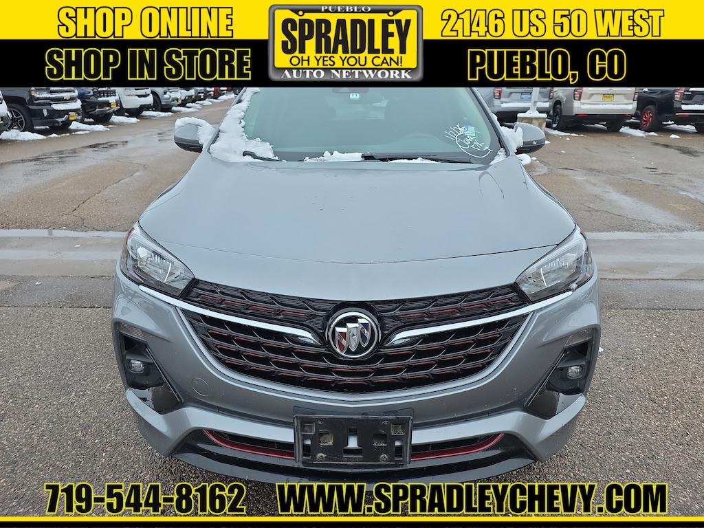 CARFAX One-Owner. Clean CARFAX. Moonstone Gray Metallic 2023 Buick Encore GX Select FWD CVT ECOTEC 1.3L Turbo. Recent Arrival! Odometer is 25564 miles below market average! 29/32 City/Highway MPG. Come in and see why people buy from Spradley Chevrolet Hyundai and then send their friends and family. We pride ourselves on being the best in customer service and giving you the best deal possible. And if you have good credit, bad credit, bankruptcy, or are a first time buyer, we can help! Call Spradley Chevrolet Hyundai’s Internet Department today at 719-544-8162 and schedule your time to come in and test drive any of our new Chevrolet Silverado 1500, Impala and Suburban’s or Hyundai Santa Fe, Tucson and Accent’s. And don’t forget, we have all makes and models of pre-owned to choose from. Located at 2146 HWY 50 West, Pueblo, Colorado, where you will always hear, Oh Yes You Can! Spradley Chevrolet Hyundai, your dealership for all of Southwest, Southeast and Southern, Colorado! Spradley Kia is dedicated to your satisfaction before, during, and after your purchase. We'll go the extra mile to take care of you.