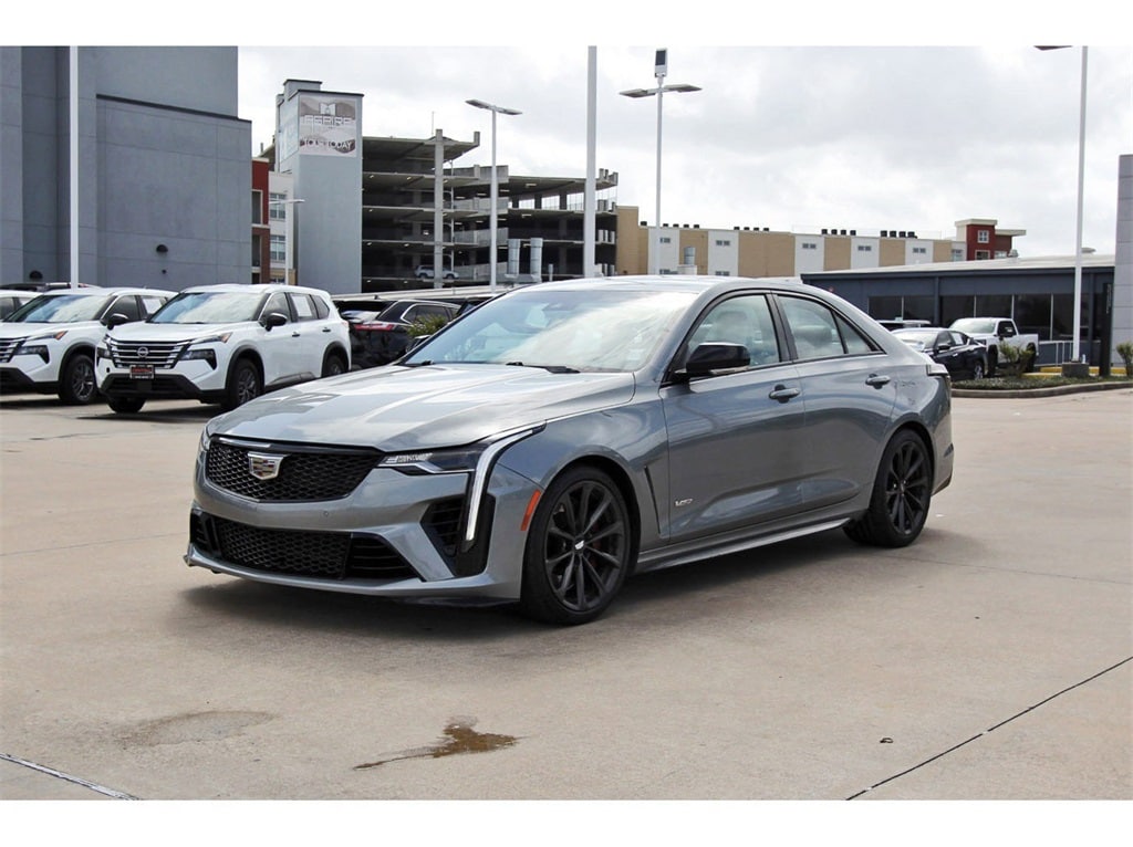 Central Houston Nissan is proud to present you with another True Market Priced Pre-Owned Vehicle. This 2023 Cadillac CT4 V-Series is loaded with the following Factory Options: Climate Package, Driver Assist Package, Preferred Equipment Group 1SP, Radio: Cadillac User Experience w/Embedded Nav, Sueded Microfiber Wrapped Interior Trim Package, Technology Package, 15 Speakers, 18" Aluminum Alloy Wheels, 4-Wheel Disc Brakes, ABS brakes, Adaptive Remote Start, Adaptive suspension, Air Conditioning, Alloy wheels, AM/FM radio: SiriusXM, Anti-whiplash front head restraints, Apple CarPlay/Android Auto, Auto High-beam Headlights, Auto-dimming door mirrors, Auto-dimming Rear-View mirror, Automatic temperature control, Automatic Vehicle Hold Brake, Black Mirror Caps (LPO), Brake assist, Buckle to Drive, Bumpers: body-color, Compass, Delay-off headlights, Driver 4-Way Power Lumbar Seat Adjuster, Driver door bin, Driver Seat Manual Cushion Length Adjustment, Driver Seat Power Seatback Bolster Adjustment, Driver vanity mirror, Dual front impact airbags, Dual front side impact airbags, Electronic Precision Shift, Electronic Stability Control, Emergency communication system: OnStar and Cadillac connected services capable, Exterior Parking Camera Rear, Four wheel independent suspension, Front anti-roll bar, Front Bucket Seats, Front Center Armrest w/Storage, Front dual zone A/C, Front Passenger 4-Way Power Lumbar Seat Adjuster, Front Passenger Power Seatback Bolster Adjustment, Front Passenger Seat Manual Cushion Length Adjmt, Front reading lights, Fully automatic headlights, Garage door transmitter, Heated door mirrors, Heated front seats, Heated steering wheel, High Performance Front Bucket Seats, High Performance Steering Wheel, Illuminated entry, Inteluxe Seating Surfaces, Knee airbag, Leather Shift Knob, Leather steering wheel, Low tire pressure warning, Memory seat, Navigation System, Occupant sensing airbag, Outside temperature display, Overhead airbag, Overhead console, Panic alarm, Passenger door bin, Passenger vanity mirror, Performance Data & Video Recorder, Performance Front Bucket Seats, Power door mirrors, Power driver seat, Power passenger seat, Power steering, Power Sunroof w/Express Open & Venting, Power windows, Radio data system, Rain sensing wipers, Rear anti-roll bar, Rear reading lights, Rear seat center armrest, Rear window defroster.