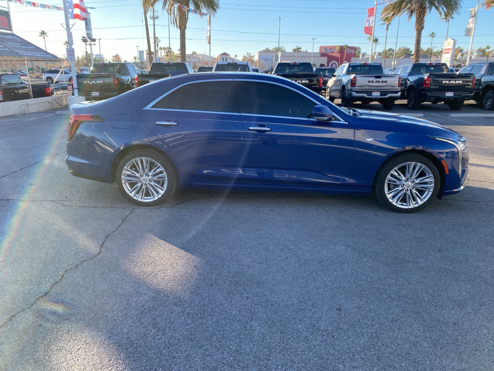 Our rewarding Accident Free 2023 Cadillac CT4 Premium Luxury Sedan moves you with sophisticated style in Wave Metallic! Powered by a TurboCharged 2.0 Liter 4 Cylinder that offers 237hp to a paddle-shifted 8 Speed Automatic transmission, you have more control over the gears. This Rear Wheel Drive sedan also commands the road with composed handling and sees nearly 34mpg on the highway. Dynamically designed, our CT4 keeps you ahead of the pack with LED lighting, 18-inch alloy wheels, prominent rocker moldings, rain-sensing wipers, sunroof, and dual bright-tipped exhaust outlets for an eye-catching finish. The first-class Cadillac details found in our Premium Luxury cabin include comfortable leather power front seats, a leather-wrapped steering wheel, dual-zone automatic climate control, keyless entry/ignition, remote start, and a mobile command center for making your connections. Highlights include an 8-inch touchscreen, voice recognition, wireless Android Auto/Apple CarPlay, Bluetooth, WiFi compatibility, wireless charging, and a premium eight-speaker sound system. Intelligent Cadillac safety awaits with enhanced automatic braking, forward-collision warning, blind-spot monitoring, adaptive cruise control, lane-keeping assistance, parking sensors, an HD rearview camera, ABS, airbags, and more. With all that, our CT4 Premium Luxury is refined and ready to perform! Save this Page and Call for Availability. We Know You Will Enjoy Your Lithia Sahara Chrysler Dodge Ram L0517 Test Drive Towards Ownership! Must finance with Chrysler Capital for all discounts to be applied.
