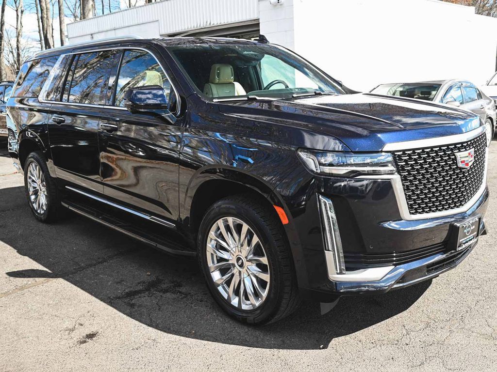 2023 Cadillac Escalade ESV Premium Recent Arrival! Clean Carfax, One Owner, Escalade ESV Premium, 4D Sport Utility, 6.2L V8, 10-Speed Automatic, AWD, Dark Moon Blue Metallic, Parchment with Jet Black Accents interior, 16.9" Diagonal OLED Infotainment Screen, 2-Presets Memory for Driver Seat Adjuster, 2-Way Driver Power Lumbar Seat Adjuster, 2-Way Front Passenger Power Lumbar Seat Adjuster, 3 Years of OnStar & Connected Services Plan, 3rd row seats: split-bench, 4-Way Power Driver Lumbar Seat Adjuster, 4-Way Power Front Passenger Lumbar Seat Adjuster, 8-Way Power Driver Seat Adjuster, 8-Way Power Front Passenger Seat Adjuster, ABS brakes, Adaptive Cruise Control, AKG Studio 19-Speaker Audio System, AM/FM radio: SiriusXM with 360L, Auto High-beam Headlights, Auto tilt-away steering wheel, Auto-dimming door mirrors, Automatic Seat Belt Tightening, Automatic temperature control, Brake assist, Door Lock & Latch Shields, Dual front impact airbags, Dual front side impact airbags, Electronic Stability Control, Enhanced Automatic Emergency Braking, Enhanced Automatic Parking Assist, Exterior Parking Camera Rear, Four wheel independent suspension, Front Bucket Seats, Front dual zone A/C, Fully automatic headlights, Garage door transmitter, Glass Breakage Sensor, HD Radio, Heads-Up Display, Heated & Ventilated Driver & Front Passenger Seats, Heated door mirrors, Heated rear seats, Heated steering wheel, Illuminated Cargo Sill Plate (LPO), Illuminated entry, Illuminated Front Door Sill Plates (LPO), Illumination Package (LPO), Lane Change Alert with Side Blind Zone Alert (UKV), Leather Seating Surfaces with Mini-Chevron Perf Inserts (LPO), Low tire pressure warning (LPO), Mechanical Limited-Slip Differential (LPO), Memory seat (LPO), Navigation System (LPO), Occupant sensing airbag (LPO), Overhead airbag (LPO), Panic alarm (LPO), Power door mirrors (RPO), Power Lift Gate (RPO) (RWD), Power Panoramic Tilt-Sliding Sunroof (RPO), Power passenger seat (RPO), Preferred Equipment Group 1SB (RPO), Premium Smooth Ride Suspension (RPO), Puddle Lamps with Cadillac Crest (RPO), Radio: AM/FM with Navigation (RPO), Rain sensing wipers (RPO), Rear air conditioning (RPO), Rear Camera Mirror (RPO), Rear Cross Traffic Alert (RPO), Rear Seat Entertainment System (RPO), Rear window defroster (RPO), Rear window wiper (RPO), Reconfigurable Full-Color Head-Up Display (RPO), Remote keyless entry (RPO), Reverse Automatic Braking (RPO), Running Board Assist Steps (RPO), Security system (RPO), Steering wheel memory (RPO), Super Cruise (RPO), Teen Driver (RPO), Telescoping steering wheel (RPO), Theft-Deterrent Alarm System (RPO), Traction control (RPO).