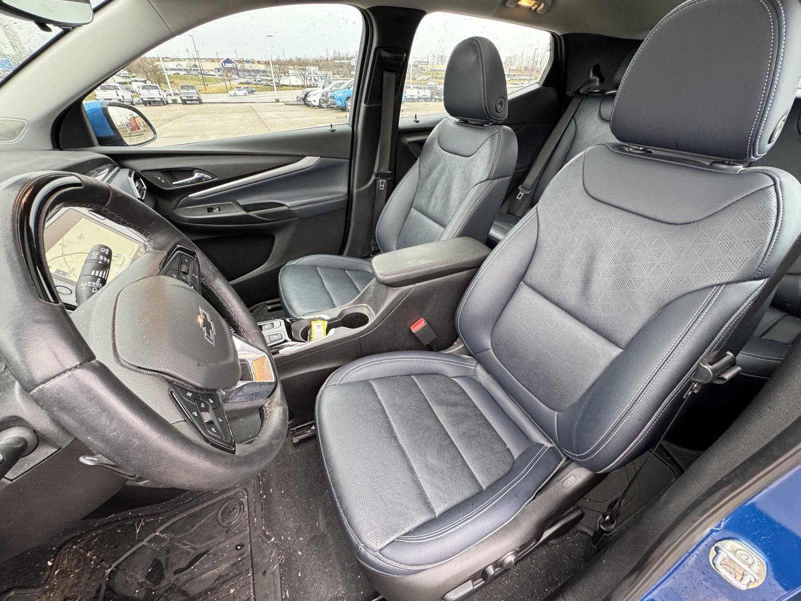 The 2023 Chevrolet Bolt EUV Premier offers a blend of advanced technology, comfort, and electric performance. With its spacious interior, premium features, and the confidence of a Chevrolet name, this vehicle is designed for both convenience and driving enjoyment. The Bolt EUV is equipped with an electric drive unit, providing a smooth and quiet ride, while its exterior is finished in Bright Blue Metallic. The interior features Jet Black/Nightshift Blue perforated leather-appointed trim, adding a touch of sophistication to each drive.