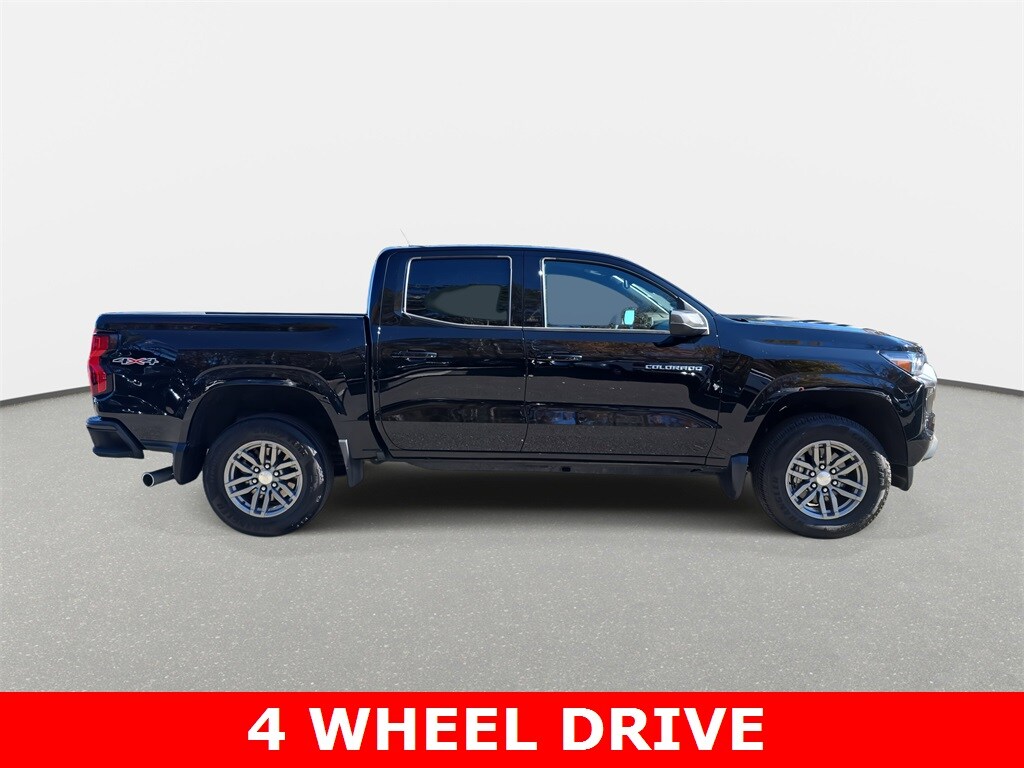 Clean CARFAX. 2023 Chevrolet Colorado LT 4WD Black 4WD 8-Speed Automatic 2.7L Turbo. Colorado LT 4WD, 4D Crew Cab, 2.7L Turbo, 8-Speed Automatic, 4WD, Black, Jet Black with Cloth Seat Trim, 8-Way Power Driver Seat Adjuster, Air Conditioning, Alloy wheels, Apple CarPlay/Android Auto, Bedliner with Integral Storage Compartments, Blind Zone Steering Assist, Cargo Area Lamps, Chevy Safety Assist, Driver & Front Passenger Illuminated Visors, Dual-Zone Automatic Air Conditioning, Electronic Automatic Cruise Control, EZ-Lift & Lower Tailgate, Front & Rear Splash Guards, Front Bucket Seats, Front LED Fog Lamps, Heated Driver & Front Passenger Seats, Heated Power-Adjustable Outside Mirrors, Inside Rear-View Auto-Dimming Mirror, Lane Keep Assist with Lane Departure Warning, LT Convenience Package, LT Convenience Package II, Manual Rear-Sliding Window, Navigation System, Panic alarm, Power Driver Lumbar Control Seat Adjuster, Preferred Equipment Group 4LT, Pro Essentials Package, Rear Cross Traffic Braking, Rear Park Assist, Rear-Window Electric Defogger, Remote Vehicle Starter System, Safety Package, Security system, StowFlex Tailgate Storage Compartment, Tailgate Keyed Cylinder Lock, Tilt & Telescoping Steering Column, Tilt steering wheel, Wheels: 17" x 8" Argent Metallic Aluminum.