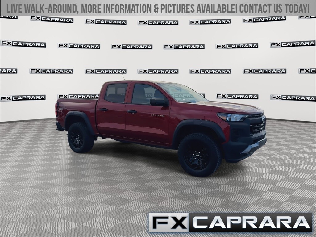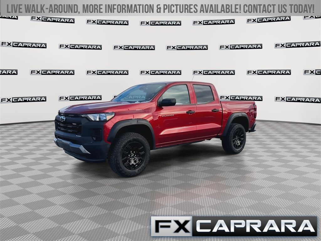 Odometer is 9031 miles below market average! Clean Carfax. Red 2023 Chevrolet Colorado Trail Boss 4D Crew Cab 4WD 8-Speed Automatic 2.7L Turbo. The Caprara family first opened our dealership doors 50 years ago and has proudly been a presence in Jefferson County, St. Lawrence County and the surrounding area through the years. When you visit our family-owned and operated dealership our team aims to make you feel right at home. Visit us for yourself to become a part of the FX Caprara family!