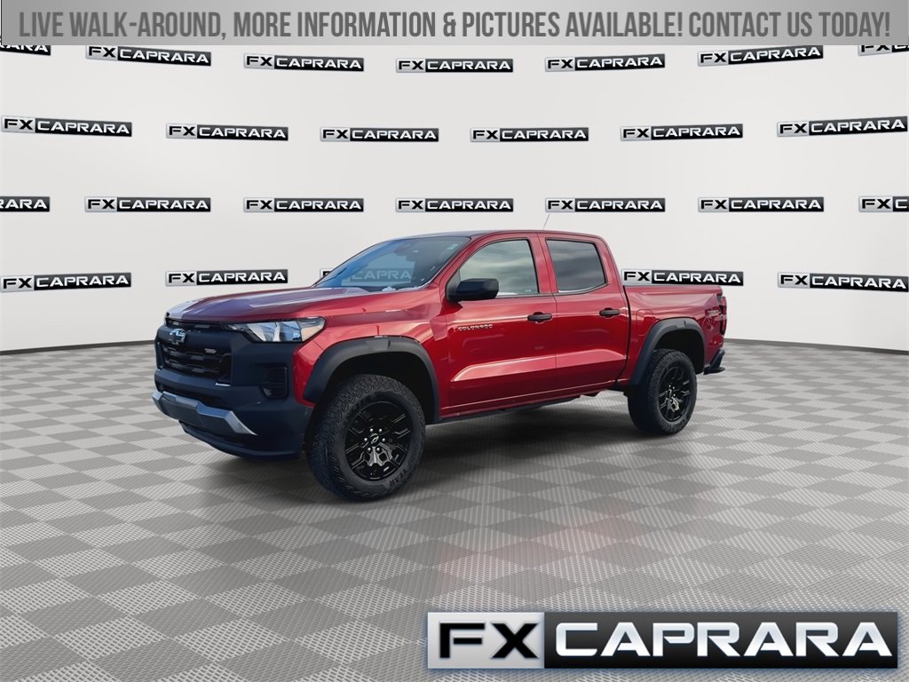 Odometer is 9096 miles below market average! Clean CARFAX. Red 2023 Chevrolet Colorado Trail Boss 4D Crew Cab 4WD 8-Speed Automatic 2.7L Turbo. The Caprara family first opened our dealership doors 50 years ago and has proudly been a presence in Jefferson County, St. Lawrence County and the surrounding area through the years. When you visit our family-owned and operated dealership our team aims to make you feel right at home. Visit us for yourself to become a part of the FX Caprara family!