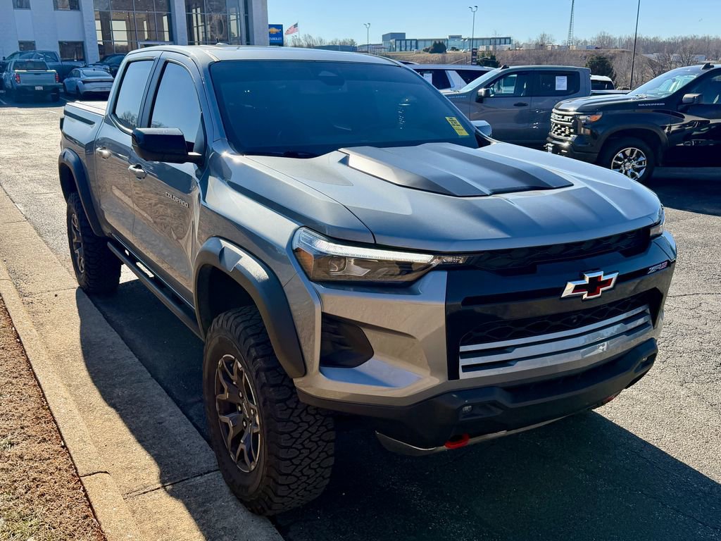 This accident-free 2023 Chevrolet Colorado ZR2 is built for adventure, pairing a robust 2.7L Turbo engine with 4-wheel drive for impressive off-road capability. The ZR2 Convenience Package III, Technology Package with Adaptive Cruise Control and HD Surround Vision, and a power sliding glass sunroof with manual shade add to its appeal, while the EPA-estimated 17 city/19 highway MPG ensures you can go further on every journey. Inside this Colorado ZR2, you'll enjoy perforated leather-appointed seating, ventilated front seats, and a heated steering wheel for year-round comfort. The Bose premium 7-speaker audio system delivers rich sound, while wireless charging and wireless phone projection keep your devices powered and connected wherever you go. Safety is a standout, with features like Automatic Emergency Braking, Lane Keep Assist, and Rear Pedestrian Alert providing peace of mind on every drive. The HD Surround Vision system enhances visibility, making tight spots and trails easier to navigate. The exterior of this Colorado ZR2 is rugged and ready for any challenge, highlighted by its aggressive stance and practical features designed for both daily driving and off-road adventures. We invite you to visit our showroom and take the Colorado ZR2 for a test drive. Discover the thrill of off-road adventure and the comfort of premium amenities all in one remarkable vehicle. Let us help you find the perfect fit for your lifestyle.