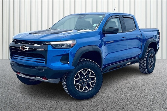 The 2023 Chevrolet Colorado ZR2 Crew Cab 4WD is purpose-built for drivers who demand serious off-road capability without giving up modern comfort and technology. Powered by the 2.7L Turbo High-Output engine paired with an automatic transmission, this ZR2 delivers strong torque, confident acceleration, and trail-ready performance. Equipped with driver-selectable full-locking front and rear differentials, a 2-speed transfer case, and ZR2-specific suspension, this truck is engineered to tackle challenging terrain while remaining composed on the road. Finished in striking Glacier Blue Metallic with a Jet Black / Artemis interior, the ZR2 stands out with rugged design cues and functional upgrades. Inside, the ZR2 offers a refined yet durable cabin packed with premium features. Enjoy heated and ventilated front seats, a heated steering wheel, dual-zone automatic climate control, and an advanced 11.3-inch color touchscreen with Google built-in, navigation capability, and wireless Apple CarPlay & Android Auto. The 11-inch digital driver information display, HD Surround Vision, adaptive cruise control, and Chevy Safety Assist suite provide confidence whether you're navigating tight trails or busy highways.
