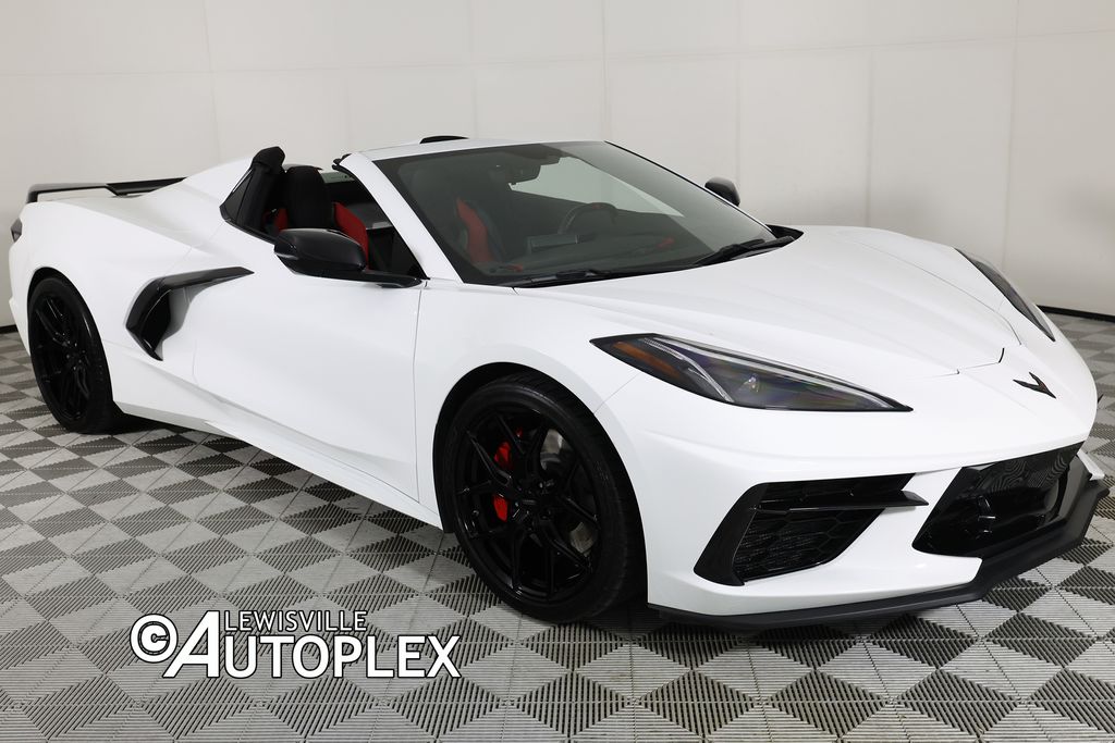 CARFAX One-Owner. Clean CARFAX. Pre-Qualify for Low Finance Rate & 100k Mile Extended Service Plan, 90 Day/3k Mile Limited Warranty, Free Clean CARFAX Report, Autoplex No Haggle Price! 2023 Chevrolet Corvette Stingray Convertible 2LT. This Chevrolet Features: Custom Vossen Wheels - 19" Front & 20" Rear, Z51 Performance Package, Magnetic Ride Control, Red Brake Calipers, Convertible Hard Top, GT2 Bucket Seats, Heads-Up Display, Rear Backup Camera, Front Curb View Parking Cameras, Blind Spot Monitor, Lane Departure Warning, Bose Audio System, Satellite Radio, Apple CarPlay & Android Auto, Arctic White Exterior, Adrenaline Red & Black Two-Tone Leather Seats, Heated & Ventilated Seats, Sueded Microfiber Wrapped Steering Wheel, Stealth Interior Trim Package, Auto Transmission, 6.2L V8 Engine, And Much More... Recent Arrival! Awards: * Car and Driver 10 Best Car and Driver, January 2017. We perform a quality 125-pt inspection, which means that your Pre-Owned vehicle will be in Top Condition when You Drive it Home. We are a CarFax Advantage Dealer, committed to offering CarFax reports with every used car we sell. Stop shopping and start driving! Our Internet Special is Priced to Move Fast---so act quickly!! Call for More Information or to Schedule a Test Drive Today. Lewisville Autoplex is the pre-owned division of Lewisville Mitsubishi. We have the most diverse inventory than any other franchise dealer in DFW, selling vehicles all across the nation. We provide free airport pickup and can facilitate low cost shipping directly to your door. Financing available in all 50 states! Located ten minutes north of DFW Airport and Downtown Dallas off I-35. Check us out at LewisvilleAutoplex.com. Peace of mind Vehicle history report Title information Odometer readings Accident data (if applicable) Service history Vehicle usage Recall information (if applicable) Warranty status Free CarFax report A name you can trust Lewisville Autoplex Mitsubishi is dedicated to your satisfaction before, during, and after your purchase. We'll go the extra mile to take care of you.