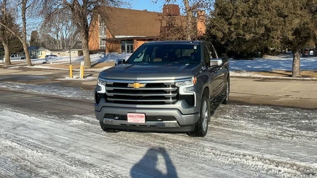 This pre-owned 2023 Chevrolet Silverado 1500 High Country features a 3.0L Duramax Turbo Diesel engine and Four Wheel Drive. With a mileage of 49,840, it offers a comfortable interior with Jet Black/Umber seating surfaces, advanced technology including a 13.4" Chevrolet Infotainment 3 Premium System with Google built-in, and a range of safety features such as HD Surround Vision, Lane Keep Assist, and Forward Collision Alert. The truck is equipped with premium leather seats, navigation, and a sunroof, making it a versatile and well-appointed vehicle for both work and leisure.
