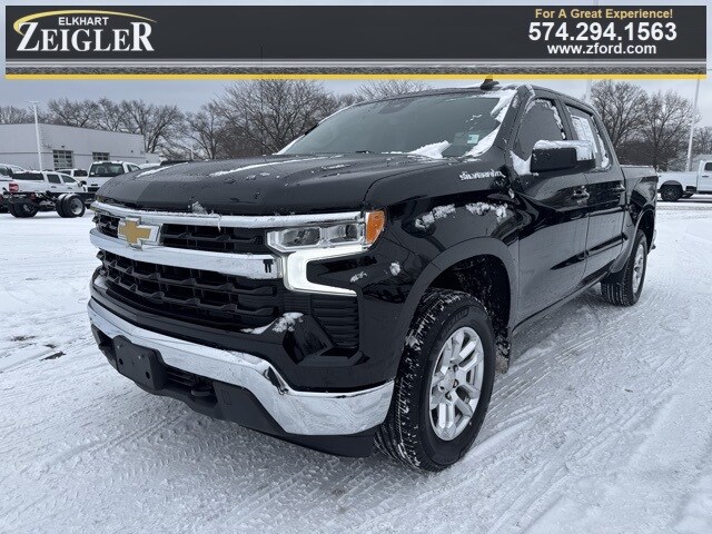 Black 2023 Chevrolet Silverado 1500 LT 8-Speed Automatic, 4WD, Black Cloth. At Zeigler Ford Lincoln of Elkhart, Home of the BEST PRICE GUARANTEE & GUARANTEED FINANCING, we take pride in treating our customers like family, ensuring that your experience is one that you will NEVER forget. Every vehicle has been through a 172-point safety inspection completed by a certified technician and fully detailed. Pre-Owned Ford Vehicles 2018-2017-2016-2015-2014-2013-2012-2011-2010-2009-2008-2007-2006 Ford Escapes, Fusions, Focus, Edges, Flex, F- Series, Heavy Duty Diesel Trucks and more For sale. Take advantage of our VIP internet experience by calling 574-970-5225 to schedule a test drive. Read our customer reviews at www.zeiglerfordelkhart.com/reviews or visit us on the web at www.zford.com, or stop by today, located at 2525 Bypass Rd. Elkhart, IN 46514. We are proud to service customers saving YOU time & money on ANY New or Pre-owned vehicle! Credit Union Financing, Special LOW Interest Rates available. Poor Credit, No Credit, FIRST TIME BUYERS!! Past Bancruptcy... All are welcome to apply for financing TODAY!! See dealer for complete details, dealer is not responsible for pricing errors, all prices, plus tax, title, and plate fees. Serving Michigan and all of our surrounding cities like Goshen, South Bend, Granger, Osceola, Mishawaka, Warsaw, Plymouth, Niles, Union, Edwardsburg, Bristol, Shipshewana, & including the entire Michiana area, and anywhere in the great state of Indiana. . Check for a vehicle's unrepaired recalls by VIN at http://vinrcl.safercar.gov/vin/. Zeigler Ford- FOR A GREAT EXPERIENCE. Odometer is 22081 miles below market average!
