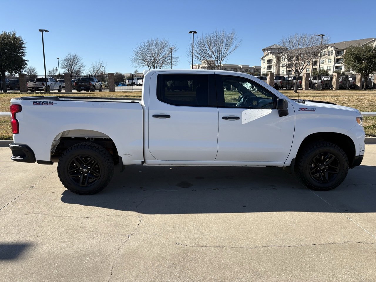 NAVIGATION / Navi / GPS, 10-Speed Automatic, 4WD, Black Cloth, 10-Way Power Driver Seat w/Lumbar, 12.3 Multicolor Reconfigurable Digital Display, 120-Volt Bed Mounted Power Outlet, 120-Volt Instrument Panel Power Outlet, 6-Speaker Audio System, All-Weather Floor Liner (LPO) (AAK), Auto-Locking Rear Differential, Bluetooth® For Phone, Chevrolet Connected Access Capable, Color-Keyed Carpeting Floor Covering, Compass, Convenience Package, Deep-Tinted Glass, Dual Rear USB Ports (Charge Only), Dual-Zone Automatic Climate Control, Electric Rear-Window Defogger, Electrical Steering Column Lock, Electronic Cruise Control, EZ Lift Power Lock & Release Tailgate, Front LED Fog Lamps, HD Rear Vision Camera, Heated Driver & Front Outboard Passenger Seats, Heated Power-Adjustable Outside Mirrors, Heated Steering Wheel, Heavy-Duty Air Filter, High Gloss Black Mirror Caps, Hill Descent Control, Hitch Guidance, Inside Rear-View Mirror w/Tilt, Keyless Open & Start, LED Cargo Area Lighting, OnStar & Chevrolet Connected Services Capable, Performance Red Recovery Hooks, Power Front Windows w/Driver Express Up/Down, Power Front Windows w/Passenger Express Down, Power Rear Windows w/Express Down, Preferred Equipment Group 2LT, Rear 60/40 Folding Bench Seat (Folds Up), Remote Vehicle Starter System, SiriusXM w/360L, Standard Tailgate, Steering Wheel Audio Controls, Suspension Package, Theft Deterrent System (Unauthorized Entry), Trailering Package, Wi-Fi Hot Spot Capable, Wireless Phone Projection, Wrapped Steering Wheel. Recent Arrival! Clean CARFAX. CARFAX One-Owner. Summit White 2023 Chevrolet Silverado 1500 LT Trail Boss EcoTec3 6.2L V8 4WD. Come visit our State-of-the-Art dealership. Our beautiful facility, service drive, amenities and HUGE selection of New & Pre-Owned vehicles make StoneBriar Chevrolet your premier choice for Chevrolet dealerships in the Dallas/Ft. Worth area. Stop by or give us a call and see how we are MAKING IT EASY! Learn your options for saving time and money, we make your purchase easy at StoneBriar Chevrolet. Call and talk to one of our dedicated Internet Managers today, they have the experience and authority to make your purchase painless and trouble free! Need financing? Call us now! Stonebriar Chevrolet proudly serving the following communities Dallas, Frisco, Plano, Allen, Mckinney, Carrollton, Little Elm, Denton, Ft Worth, Arlington, Richardson, The Colony, Grapevine, Colleyville, Lewisville and Irving.