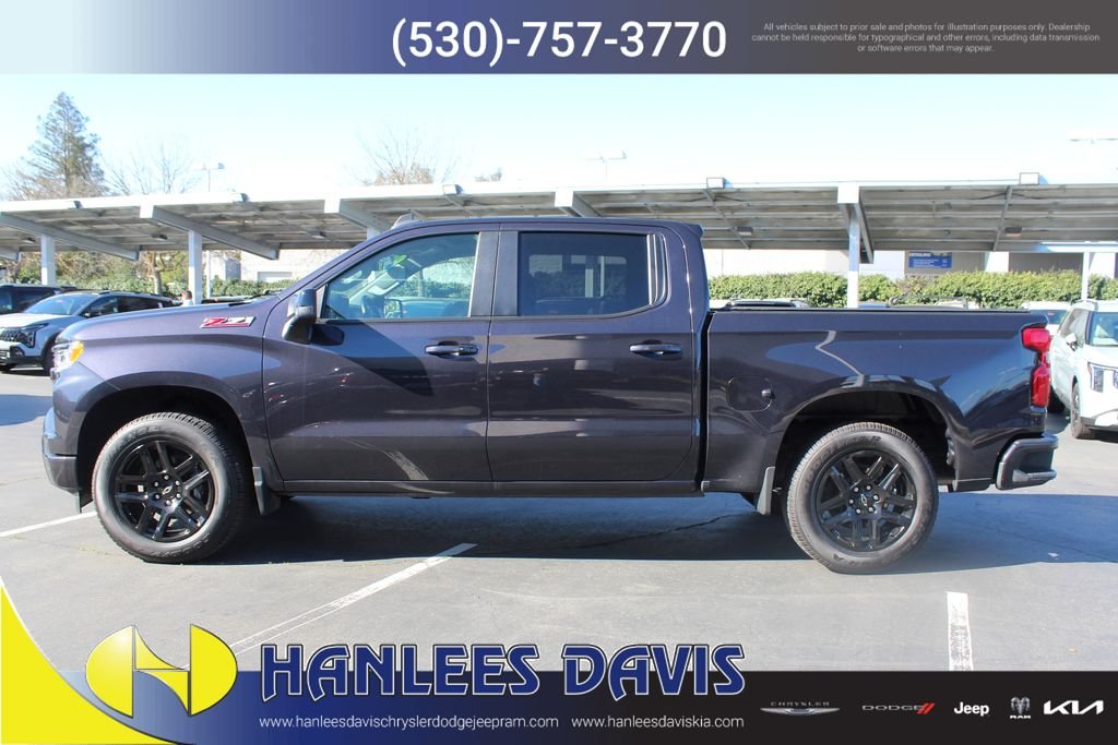 Dark Ash Metallic 2023 Chevrolet Silverado 1500 RST 4WD 10-Speed Automatic EcoTec3 5.3L V8 10-Speed Automatic, 4WD, Black Cloth. We are your Hanlees Kia and Chrysler, Dodge, Jeep, Ram dealer in Davis, CA. Call us Today at 530-771-6332. Recent Arrival!