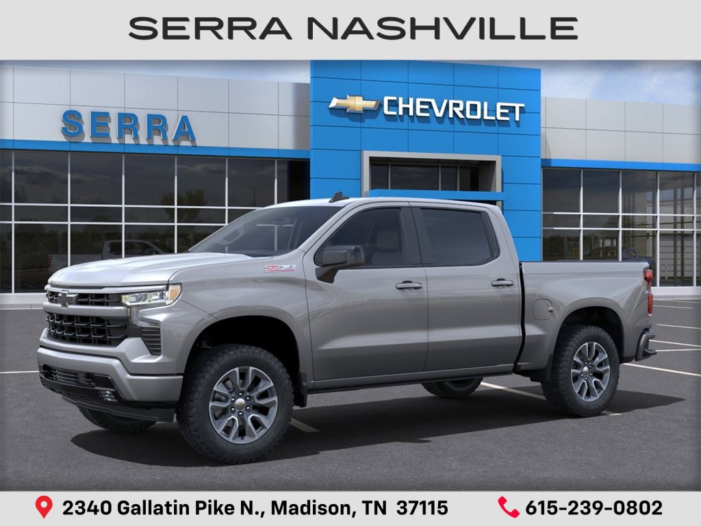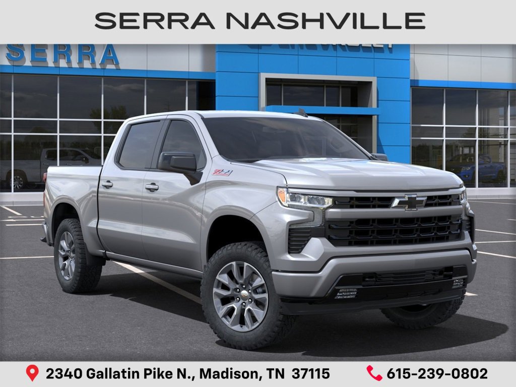 Recent Arrival! Clean Carfax. Sterling Gray Metallic 2023 Chevrolet Silverado 1500 RST 4D Crew Cab 4WD EcoTec3 5.3L V8 10-Speed Automatic. Visit the #1 Volume GM dealer in Tennessee - 2340 Gallatin Pike North. Serving the greater Nashville Area. Now serving Antioch, TN - Clarksville, TN - Murfreesboro, TN - Springfield, TN. Serra Savings, Serra Value Price and payment estimates include all rebates and discounts available to everyone and do not include tax, title registration, dealer processing fee of $895 or optional equipment purchased at time of sale. The price of vehicles on this website may not yet include options or upfits that have been installed recently by or for the dealership. Published prices are subject to change without notice to correct errors or omissions. While every effort has been made to ensure display of accurate data, the vehicle listings within this web site may not reflect all accurate vehicle items. Accessories and color may vary. The features and options listed may not apply to this specific vehicle. MPG estimates on this website are EPA estimates; your actual mileage may vary. The EPA periodically modifies its MPG calculation methodology; all MPG estimates are based on the methodology in effect when the vehicles were new.