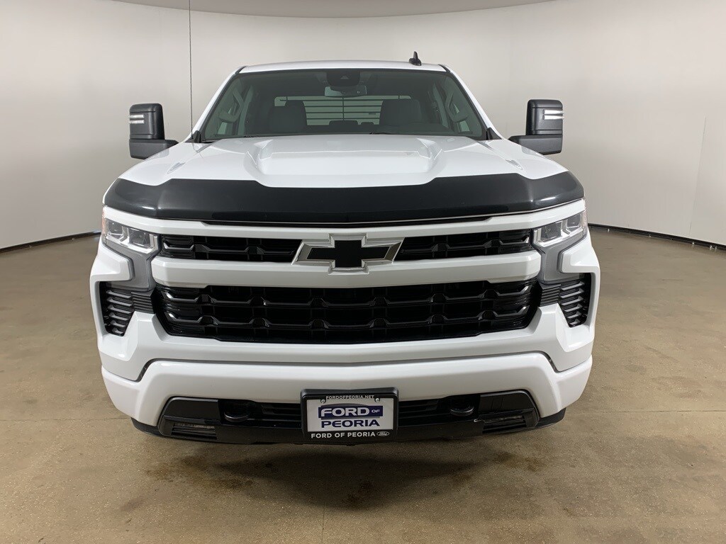 Summit White 2023 Chevrolet Silverado 1500 RST Crew Cab 4WD with Jet Black cloth interior - available now at Ford of Peoria in Peoria, IL. This clean AutoCheck Silverado RST delivers bold styling, strong V8 power, and modern technology, making it a great choice for drivers who want a capable full-size truck that's equally at home on the jobsite, the highway, or the weekend. Under the hood is the proven 5.3-liter EcoTec3 V8 engine paired with a 10-speed automatic transmission, providing confident acceleration, smooth shifting, and strong towing capability. Four-wheel drive with a two-speed transfer case enhances traction in snow, rain, and off-road conditions, while the RST trim adds a sporty, body-color exterior look. This Silverado RST presents in excellent overall condition and offers a strong combination of V8 power, modern technology, and everyday usability in a bold, sport-focused package.