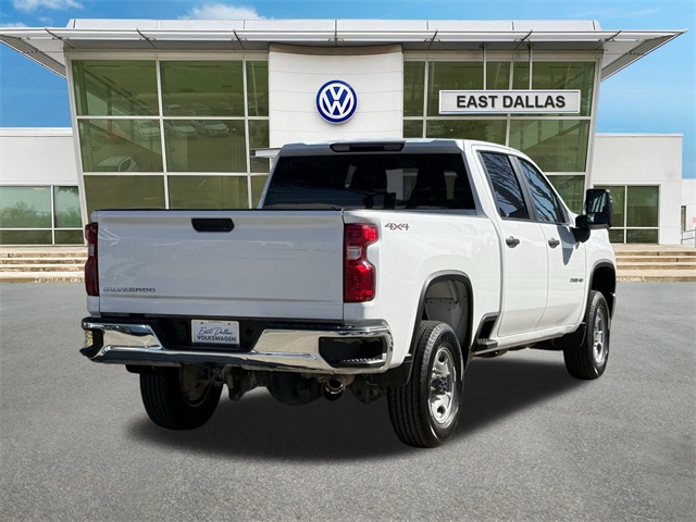 Why buy from East Dallas Volkswagen? We are family-owned and operated with your best interest in mind. With a large selection of new and pre-owned inventory, complimentary car washes, complimentary loan cars for service customers, there's no better place to buy. East Dallas Volkswagen is here for all your vehicle needs! Clean CARFAX. CARFAX One-Owner. Summit White 2023 Chevrolet Silverado 2500HD Work Truck 4WD 10-Speed Automatic Duramax 6.6L V8 Turbodiesel one owner, clean car fax, Bluetooth, alloy wheels, LED headlights, 10-Speed Automatic, 4WD, Jet Black Vinyl. Preferred Equipment Group 1WT (170 Amp Alternator, 2-Speed Electronic Shift Transfer Case, 3.5" Diagonal Monochromatic Display DIC, Black Front Bumper, Black Front Grille, Black Mirror Caps, Black Rear Bumper, Bluetooth For Phone, High-Visibility Vertical Trailering Mirrors, Locking Tailgate, Manual Tailgate Function w/No EZ Lift, Manual Tilt-Wheel Steering Column, Power Rear Windows w/Express Down, Rear 60/40 Folding Bench Seat (Folds Up), Rubberized-Vinyl Floor Covering, Solar Absorbing Tinted Glass, and Standard Tailgate), Snow Plow Prep/Camper Package (220 Amp Alternator), Suspension Package, 10-Speed Automatic, 4WD, Jet Black Vinyl.