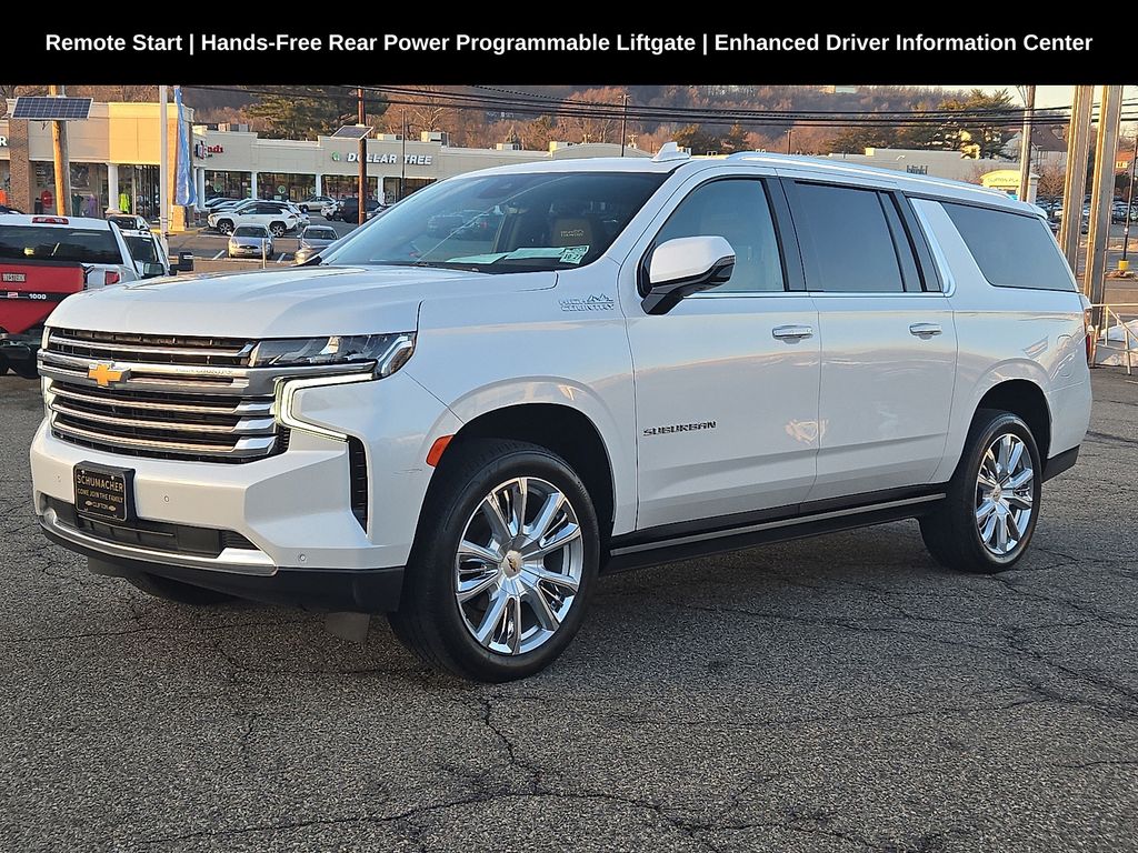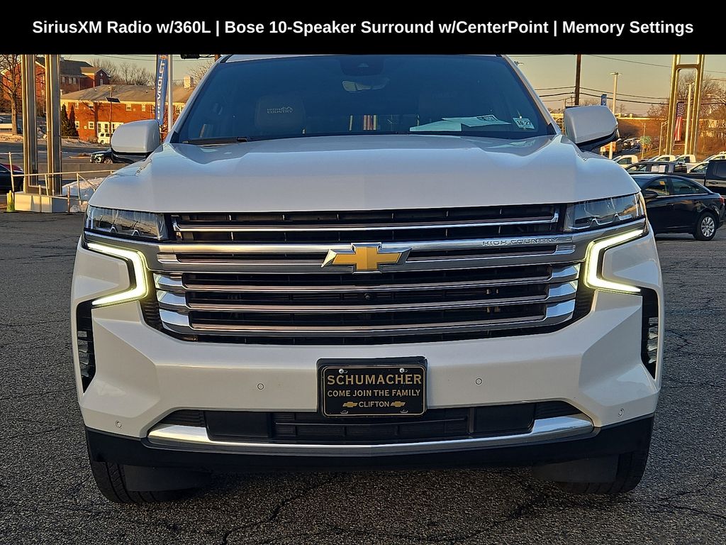 Odometer is 7274 miles below market average! Schumacher Chevrolet of Clifton is pumped up to offer this good-looking 2023 Chevrolet Suburban High Country in Iridescent Pearl Tricoat. Beautifully equipped with Preferred Equipment Group 3LZ, Premium Package 2, License Plate Front Mounting Package, ABS brakes, Adaptive suspension, Apple CarPlay/Android Auto, Auto-dimming door mirrors, Bose 10-Speaker Surround w/CenterPoint, Bright Front & Rear Door Sill Plates, Chrome Door Handles w/Body-Color Strip, Color-Keyed Carpeting Floor Covering, Driver & Front Outboard Passenger Airbags, Dual Exhaust System, Enhanced Automatic Emergency Braking, Enhanced Driver Information Center, Floor Console, Hands-Free Rear Power Programmable Liftgate, HD Surround Vision, Heads-Up Display, Heated door mirrors, Heated Driver & Front Passenger Seats, Heated Steering Wheel, Hill Descent Control, Infotainment Display, Inside Rearview Auto-Dimming Rear Camera Mirror, Lane Change Alert w/Side Blind Zone Alert, LED Daytime Running Lamps, Memory seat, Navigation System, Outside Heated Power-Adjustable Mirrors, Power door mirrors, Power driver seat, Power Liftgate, Power windows, Remote keyless entry, Security system, SiriusXM Radio w/360L, Universal Home Remote, Wireless Charging, and Wrapped Steering Wheel.