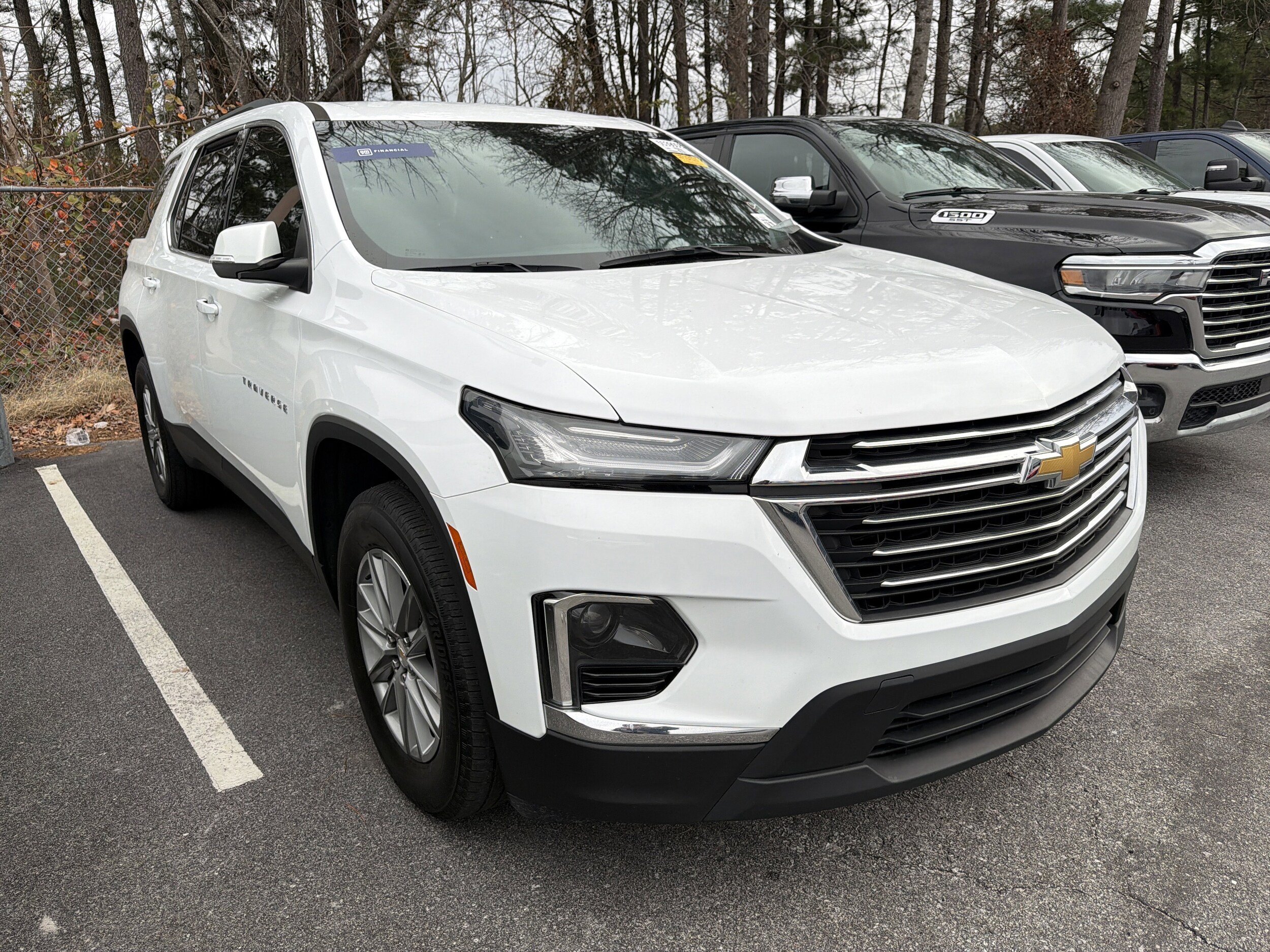 Recent Arrival! Priced below KBB Fair Purchase Price! 2023 Chevrolet Traverse LT Summit White 4.2" Multi-Color Enhanced Driver Instrument Display, Convenience & Driver Confidence Package, Heated Driver & Front Passenger Seats, Radio: Chevrolet Infotainment 3 Plus System, Rear Power Liftgate, Remote Start, SiriusXM w/360L, Universal Home Remote, 2-Way Manual Front Passenger Seat Adjuster, 3rd row seats: split-bench, 4-Wheel Disc Brakes, 6 Speakers, 6-Speaker Audio System Feature, 8-Way Power Driver Seat Adjuster, ABS brakes, Air Conditioning, Alloy wheels, AM/FM radio: SiriusXM, Apple CarPlay/Android Auto, Auto High-beam Headlights, Automatic temperature control, Black Roof Rails, Brake assist, Bumpers: body-color, Compass, Delay-off headlights, Driver door bin, Driver vanity mirror, Dual front impact airbags, Dual front side impact airbags, Electronic Stability Control, Emergency communication system, Exterior Parking Camera Rear, Four wheel independent suspension, Front anti-roll bar, Front Bucket Seats, Front Center Armrest, Front dual zone A/C, Front reading lights, Fully automatic headlights, Heated door mirrors, Illuminated entry, Leather steering wheel, Low tire pressure warning, Not Equipped w/Rear Park Assist (060), Occupant sensing airbag, Outside temperature display, Overhead airbag, Overhead console, Panic alarm, Passenger door bin, Passenger vanity mirror, Power door mirrors, Power Driver Lumbar Control, Power driver seat, Power steering, Power windows, Preferred Equipment Group 1LT, Premium Cloth Seat Trim, Radio data system, Radio: Chevrolet Infotainment System AM/FM Stereo, Rear air conditioning, Rear anti-roll bar, Rear reading lights, Rear window defroster, Rear window wiper, Remote keyless entry, Security system, SiriusXM Radio, Speed control, Speed-sensing steering, Spoiler, Steering wheel mounted audio controls, Tachometer, Telescoping steering wheel, Tilt steering wheel, Traction control, Trip computer, Turn signal indicator mirrors, Variably intermittent wipers, Voltmeter. Odometer is 12857 miles below market average! 18/27 City/Highway MPG A Few reasons why you should buy from us: * Free Nitro fill * Free secure etch Insurance ($5000 guarantee) * Extended Service hours * Rental Cars available * Master Certified Technicians * Lowest Dealer fees * Award Winning customer satisfaction * On-Line Appointment setting for service * Full Service Detail Department * Degrees at work, we pay for our employees higher education.
