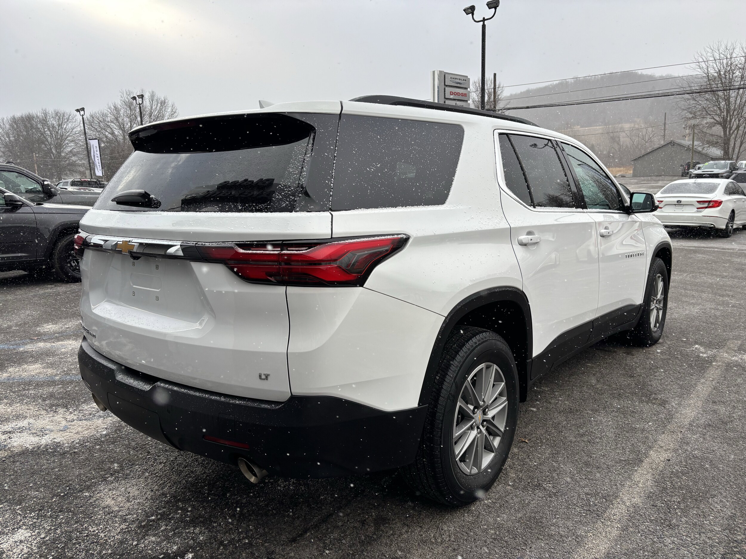 This pristine, accident-free, one-owner 2023 Chevrolet Traverse LT 1LT in Summit White is a capable and family-oriented midsize SUV ready for year-round driving. It features a strong 3.6L V6 SIDI VVT engine paired with a smooth 9-speed automatic transmission and confident all-wheel drive, providing excellent power, towing capability, and traction in various conditions. A fresh oil change has been completed, and it sits on attractive 18" Bright Silver-Painted Aluminum wheels that enhance its bold, modern presence with heated door mirrors and a convenient power liftgate. The roomy three-row interior comfortably seats up to eight passengers, with front bucket seats, heated driver and front passenger seats, a power driver seat, and a flexible 3rd row split-bench that folds flat for extra cargo space. Thoughtful details like a front center armrest and 2-way manual front passenger seat adjuster add to the everyday practicality and comfort of this well-maintained vehicle. Equipped with the Preferred Equipment Group 1LT and a clean, single-owner history, this Traverse delivers Chevrolet's trusted reliability, advanced safety features, and versatile AWD performance in a spacious package. Its an ideal choice for families or anyone seeking a dependable, low-maintenance SUV built for comfort, utility, and all-weather adventures.