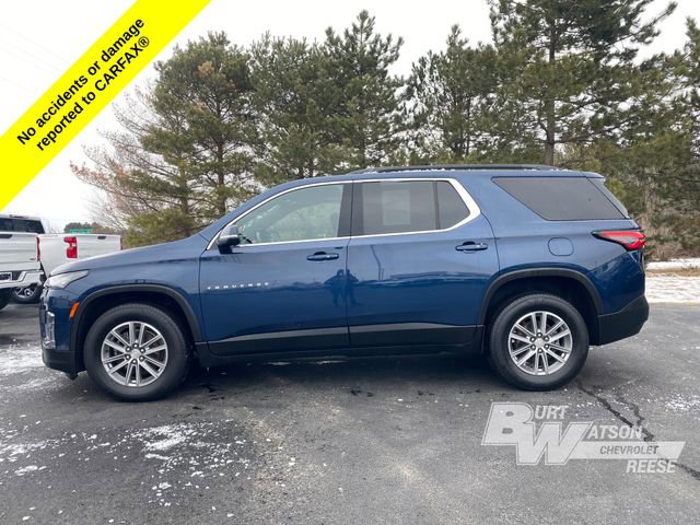 Recent Arrival! Carfax One-Owner. Clean Carfax. Odometer is 2239 miles below market average! Northsky Blue Metallic 2023 Chevrolet Traverse LT 1LT 3.6L V6 SIDI VVT 9-Speed Automatic FWD 4D Sport Utility. Local Trade, Non Smoker, One Owner, 172 point inspection certified, 1st oil change free with purchase, 2 Key Fobs, All weather floor matts, service report available, Heated Seats, Digital Key, In-Vehicle Wi-Fi, Stolen vehicle location/ recovery system, Parking Assist, In-vehicle virtual assistant, Driver monitoring system, 1st & 2nd Row All-Weather Floor Liner (LPO), 2-Way Manual Front Passenger Seat Adjuster, 3rd Row All-Weather Floor Liner (LPO), 3rd row seats: split-bench, 4-Wheel Disc Brakes, 4.2 Multi-Color Enhanced Driver Instrument Display, 6 Speakers, 6-Speaker Audio System Feature, 8-Way Power Driver Seat Adjuster, ABS brakes, Air Conditioning, Alloy wheels, AM/FM radio: SiriusXM, Apple CarPlay/Android Auto, Auto High-beam Headlights, Automatic temperature control, Black Roof Rails, Brake assist, Bright Thatcham Wheel Locks (LPO), Bumpers: body-color, Compass, Convenience & Driver Confidence Package, Delay-off headlights, Driver door bin, Driver vanity mirror, Dual front impact airbags, Dual front side impact airbags, Electronic Stability Control, Emergency communication system, Exterior Parking Camera Rear, Floor Liner Package (LPO), Four wheel independent suspension, Front anti-roll bar, Front Bucket Seats, Front Center Armrest, Front dual zone A/C, Front reading lights, Fully automatic headlights, Heated door mirrors, Heated Driver & Front Passenger Seats, Heavy-Duty Cooling System, Hitch Guidance w/Hitch View, Illuminated entry, Integrated Cargo Liner (LPO), Leather steering wheel, Low tire pressure warning, Not Equipped w/Rear Park Assist (060), Occupant sensing airbag, Outside temperature display, Overhead airbag, Overhead console, Panic alarm, Passenger door bin, Passenger vanity mirror, Power door mirrors, Power Driver Lumbar Control, Power driver seat, Power steering, Power windows, Preferred Equipment Group 1LT, Premium Cloth Seat Trim, Radio data system, Radio: Chevrolet Infotainment 3 Plus System, Radio: Chevrolet Infotainment System AM/FM Stereo, Rear air conditioning, Rear anti-roll bar, Rear Power Liftgate, Rear reading lights, Rear window defroster, Rear window wiper, Remote keyless entry, Remote Start.