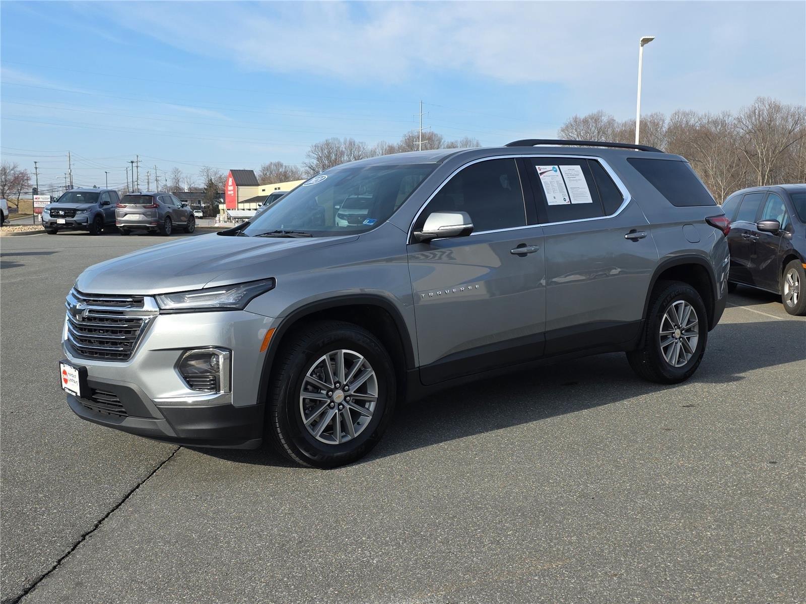 Thank you for choosing CMA's Honda of Lynchburg, this Silver Sage Metallic 2023 Chevrolet Traverse LT Cloth is a great choice! Check out the following: No Accidents! One Owner! City 18/ Hwy 27. Convenience and Driver Confidence Package ($1,295 value). Remote Start. Chevrolet Infotainment 3 Plus System Radio. Heated Driver and Front Passenger Seats. Rear Power Liftgate. 4.2" Multi-Color Enhanced Driver Instrument Display. Universal Home Remote. Preferred Equipment Group 1LT. Safety and Security. Forward collision mitigation - Forward thinking. Pedestrian impact prevention - An extra step toward safety. Technology and Telematics. Smart device mirroring - Smartphone, meet smart car. Apple CarPlay/Android Auto smart device wireless mirroring. Mobile hotspot - WiFi on the fly. Connect your devices to the Internet through your vehicle's private mobile hotspot and take the internet wherever your journey takes you, without eating up your data allowance. Find the hotspot with mobile hotspot. To be sure you don't miss out, give us a call at and schedule a test drive. We are located at 2634 Lakeside Drive Lynchburg VA 24501. We look forward to seeing you soon!
