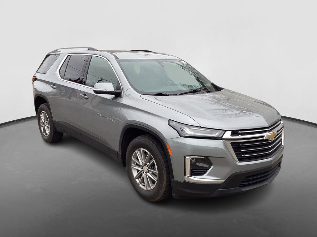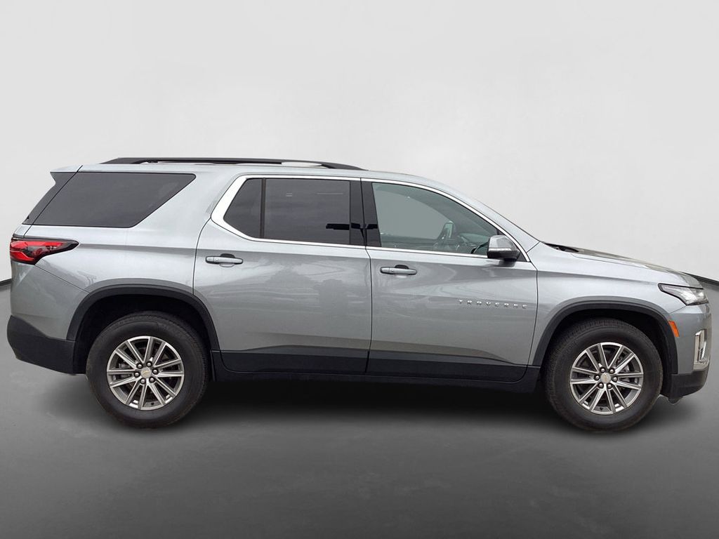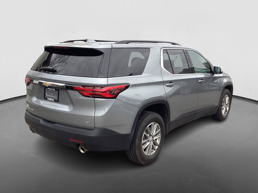 Sterling Gray Metallic 2023 Chevrolet Traverse LT 1LT AWD 9-Speed Automatic 3.6L V6 SIDI VVT. CARFAX one owner, clean CARFAX, all wheel drive, 2nd row captain chars, heated seats, forward collision alert, lane departure warning, blind spot sensor, Bluetooth, hands free Bluetooth, rear backup camera, power driver seat, remote start, remote keyless entry, push button start, power liftgate, 2nd row power fold captain chairs, 3rd row seats, premium audio, Apple CarPlay, Android Auto, premium wheels, LED cargo box lighting, power tailgate, heated outside mirrors, steering wheel audio controls, dual zone climate control, fog lights, power windows, power locks, cruise/speed control, low miles, must see, warranty included.
