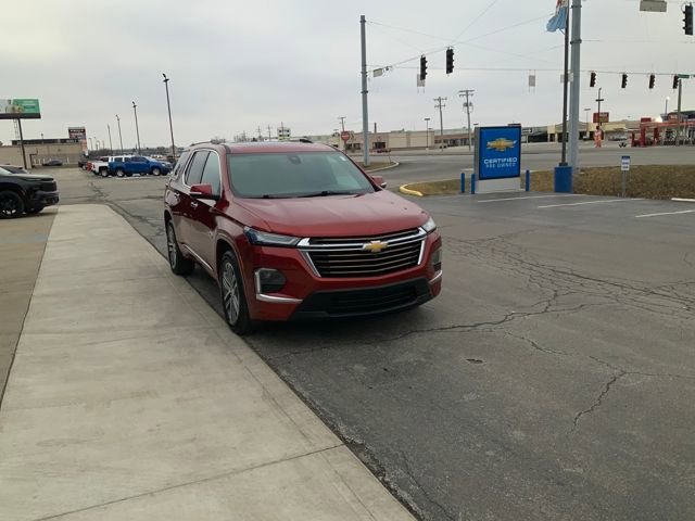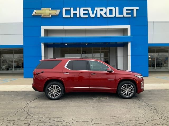 This stunning 2023 Chevrolet Traverse High Country is a true standout in its class. With its striking Radiant Red Tintcoat exterior, this SUV commands attention wherever it goes. But its impressive features go far beyond just good looks. Under the hood, you'll find a powerful 3.6L V6 SIDI VVT engine, paired with a smooth-shifting 9-Speed Automatic transmission and Front-Wheel Drive. This combination delivers an impressive balance of power and efficiency, with an EPA-estimated 18 MPG in the city and 27 MPG on the highway. Step inside, and you'll be greeted by a premium, well-appointed interior. The Traverse High Country boasts a Bose Premium 10-Speaker Audio System, a state-of-the-art Chevrolet Infotainment 3 Plus System with Navigation, and a panoramic Dual SkyScape power moonroof. Heated and ventilated front seats, along with heated second-row outboard seats, ensure year-round comfort for all passengers. Safety and technology are also at the forefront, with features like Forward Collision Alert, Automatic Emergency Braking, Lane Keep Assist with Lane Departure Warning, and the Rear Vision Camera with Rear Park Assist. The Traverse High Country is designed to keep you and your loved ones secure on the road. With its impressive capabilities, premium features, and striking good looks, this 2023 Chevrolet Traverse High Country is a must-see. We invite you to come experience it for yourself and see why it's the perfect choice for your next family adventure.