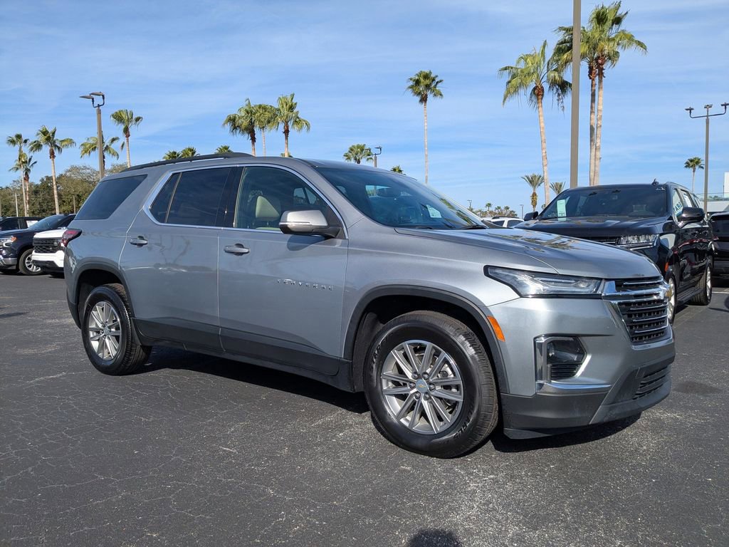 Sterling Gray Metallic 2023 Chevrolet Traverse LT Leather FWD 18/27 City/Highway MPG 9-Speed Automatic 3.6L V6 SIDI VVT CARFAX One-Owner.