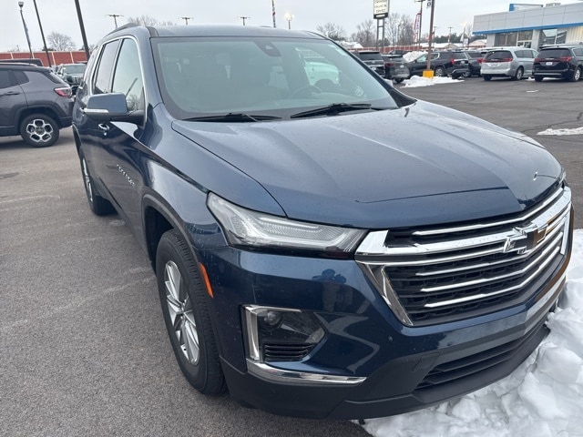The 2023 Chevrolet Traverse LT Leather FWD delivers strong V6 performance, expansive interior space, and modern technology in a midsize SUV built for families and everyday versatility. Powered by a 3.6L V6 engine paired with a smooth 9-speed automatic transmission, this Traverse provides confident acceleration, refined highway driving, and the capability to handle road trips or daily commutes with ease. With front-wheel drive and available trailering equipment, its a well-balanced SUV for comfort and practicality. Inside, the Traverse LT Leather offers a thoughtfully designed cabin with 7-passenger seating and premium touches throughout. The Jet Black interior features heated front seats, a heated steering wheel, 8-way power driver seat with lumbar support, wireless phone charging, and tri-zone automatic climate control to keep everyone comfortable. Technology is front and center with Chevrolet Infotainment 3 Plus displayed on an 8-inch HD touchscreen, offering wireless Apple CarPlay and Android Auto, Bluetooth audio streaming, voice recognition, and available SiriusXM. Safety and driver assistance are a major highlight thanks to Chevy Safety Assist, which includes automatic emergency braking, forward collision alert, lane change alert with side blind spot warning, Rear Cross Traffic Alert, Teen Car Driver technology, and a power rear liftgate add convenience and peace of mind. Finished in eye-catching Northsky Blue