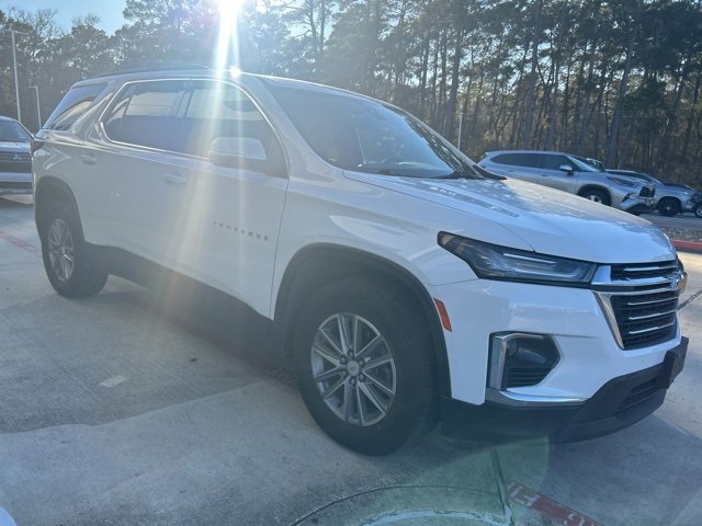 Recent Arrival! White 2023 Chevrolet Traverse LT Leather FWD 9-Speed Automatic 3.6L V6 SIDI VVT 18/27 City/Highway MPG. Huntsville Toyota has this vehicle in stock. Please contact our Internet Department, this Internet price is only valid at Huntsville Toyota. Price does not include Tax, Title, License Fees, Dealer Doc fee $225. Or Dealer Added Accessory Car RX GPS Security System-$995. Stay Home, Stay Safe – We’ll Come to You.