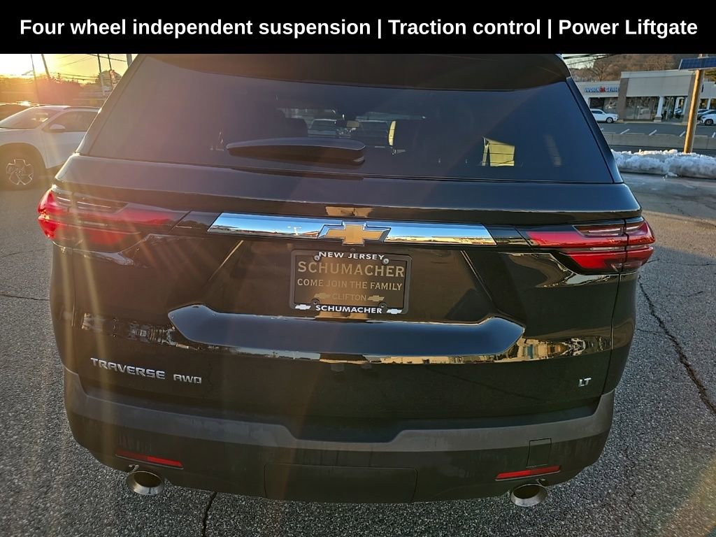Schumacher Chevrolet of Clifton is delighted to offer this fantastic 2023 Chevrolet Traverse LT Leather in Mosaic Black Metallic. Beautifully equipped with Preferred Equipment Group 3LT (Heated Driver & Front Passenger Seats), Front License Plate Bracket Mounting Package, 6-Speaker Audio System Feature, 8-Way Power Driver Seat Adjuster, Air Conditioning, Alloy wheels, Apple CarPlay/Android Auto, Exterior Parking Camera Rear, Four wheel independent suspension, Heated door mirrors, Heated Driver & Front Passenger Seats, Power driver seat, Power Liftgate, Power windows, Remote keyless entry, Security system, SiriusXM w/360L, Speed control, Spoiler, Steering wheel mounted audio controls, Traction control, Wheels: 18 Bright Silver-Painted Aluminum. Mosaic Black Metallic 2023 Chevrolet Traverse LT Leather 4D Sport Utility AWD 9-Speed Automatic 3.6L V6 SIDI VVT. The Schumacher family has been serving the community for well over fifty years, and many customers keep returning to us because we treat you like you're family. Come in today and experience the difference! Come and join the family.