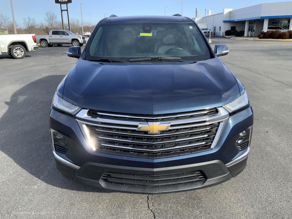 Thank you for choosing Pilson Chevrolet GMC, this 2023 Chevrolet Traverse LT Leather in Northsky Blue Metallic is a great choice! Check out the following: Carfax One Owner! City 18/ Hwy 27. Emissions, federal requirements, engine, 3.6L V6, SIDI, VVT, transmission, 9-speed automatic, wheels, 18-inch (45.7 cm) Bright Silver-Painted Aluminum, tires, P255/65R18 all-season blackwall, seating, 7-passenger (2-2-3 seating configuration), Northsky Blue Metallic, seats, front bucket, Jet Black, leather-appointed seat trim, audio system, Chevrolet Infotainment 3 Plus System, LPO, floor liner package, LPO, all-weather floor liner, first and second row, LPO, all-weather floor liner, 3rd row, LPO, integrated cargo liner, not equipped with rear park assist, see dealer for details. Want us to come to you? No problem! In case we missed a picture or a detail you would like to see we are happy to send you a personal video walking around the vehicle focusing on the closest details that are important to you. We can jump on a video call or send it directly to you via text or email. We look forward to hearing from you. Like every Pilson quality pre-owned, this vehicle has been completely serviced and inspected before it is offered for sale. Our quality pre-owned vehicles are meticulously detailed inside and out and ready to go. Click or call today on this great vehicle opportunity. BrakePlus option not included in internet price. If it's Pilson, it's possible! Pilson Auto Group is dedicated to your satisfaction before, during, and after your purchase. We'll go the extra mile to take care of you.