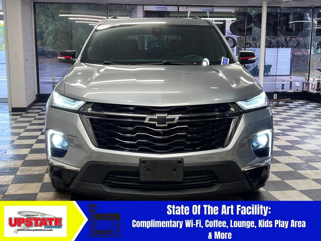 2023 Chevrolet Traverse Premier AWD - Luxury Family Adventure Awaits! Experience premium family travel with this loaded Traverse Premier featuring leather-appointed seating, ventilated front seats, and heated seats throughout all three rows for year-round comfort. The dual sunroofs create an open, airy cabin that passengers will love. Safety First: Equipped with advanced safety tech including Forward Collision Alert, Lane Keep Assist, Adaptive Cruise Control, and HD Surround Vision cameras. Earned a 4-star overall safety rating for peace of mind. Tech & Convenience: Wireless Apple CarPlay/Android Auto, built-in Wi-Fi hotspot, wireless charging, integrated navigation, and remote start make every journey effortless. The power liftgate adds convenience for busy families. Quality Assured: Clean CARFAX history with comprehensive pre-owned inspection. This well-maintained SUV offers reliable AWD performance with a powerful 310HP V6 engine. Why Choose Upstate Chevrolet? Three convenient ways to shop - visit our showroom, browse online at chevyofattica.com, or text us for instant assistance. Our commitment to customer satisfaction and transparent pricing makes your buying experience stress-free.