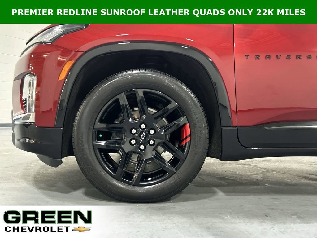 Priced below KBB Fair Purchase Price! 2023 Chevrolet Traverse Premier Radiant Red Tintcoat 3.6L V6 SIDI VVT 9-Speed Automatic FWD 4D Sport Utility Jet Black Leather, Black Bowtie, Black Door Handles, Black Roof Rails, Dual SkyScape 2-Panel Power Sunroof, Heated 2nd Row Outboard Position Seats, Heated Driver & Front Passenger Seats, Heavy-Duty Cooling System, Hitch Guidance w/Hitch View, Ornamentation, Preferred Equipment Group 1LZ, Redline Accent Decals (LPO), Redline Edition, Trailering Assist Guidelines, Trailering Equipment, Ventilated Driver & Front Passenger Seats, Wheels: 20 Gloss Black Painted Alum w/Red Stripes. 18/27 City/Highway MPG Odometer is 4990 miles below market average! Shop with confidence! Green Family Chevrolet has over 1000 Google reviews and a 4.6 rating! Remember, going green has its perks! At Green Family Chevrolet every used vehicle qualifies for Green Care which includes 2 years or 24,000 miles of basic maintenance, and a 3 day money back guarantee. A note about buying a vehicle online; Every vehicle is available for sale on a first come first serve basis. Many vehicles are being considered by multiple customers. Therefore, the first customer to agree to the price of the car, value of trade, method of payment / financing terms and put down a deposit will be the customer that buys the car.