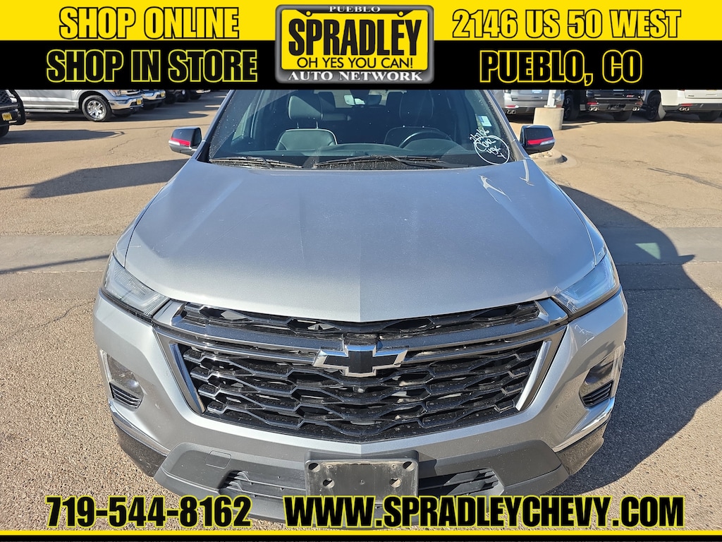 CARFAX One-Owner. Clean CARFAX. Sterling Gray Metallic 2023 Chevrolet Traverse Premier AWD 9-Speed Automatic 3.6L V6 SIDI VVT AWD. Recent Arrival! Odometer is 2735 miles below market average! Come in and see why people buy from Spradley Chevrolet Hyundai and then send their friends and family. We pride ourselves on being the best in customer service and giving you the best deal possible. And if you have good credit, bad credit, bankruptcy, or are a first time buyer, we can help! Call Spradley Chevrolet Hyundai’s Internet Department today at 719-544-8162 and schedule your time to come in and test drive any of our new Chevrolet Silverado 1500, Impala and Suburban’s or Hyundai Santa Fe, Tucson and Accent’s. And don’t forget, we have all makes and models of pre-owned to choose from. Located at 2146 HWY 50 West, Pueblo, Colorado, where you will always hear, "Oh Yes You Can!" Spradley Kia is dedicated to your satisfaction before, during, and after your purchase. We'll go the extra mile to take care of you.