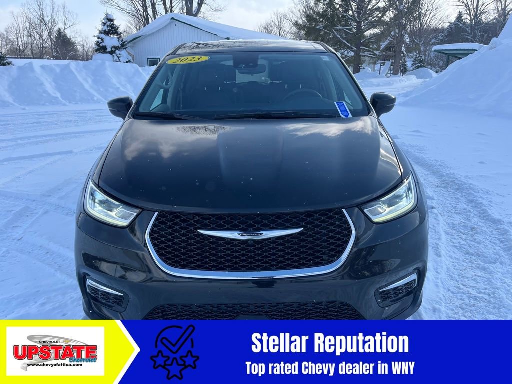3 easy ways to buy from Upstate Chevrolet! Call us at (585) 591-2300, visit us online at www.cheyofattica.com, or text us 24/7/365 at (585) 765-4030. Clean CARFAX. CARFAX One-Owner. 2023 Chrysler Pacifica Hybrid Touring L 4D Passenger Van FWD CVT 3.6L V6 Brilliant Black Crystal Pearlcoat.