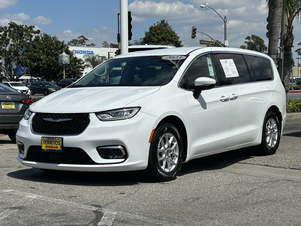 Experience the perfect blend of family-friendly innovation and refined comfort with the 2023 Chrysler Pacifica Touring L in Bright White Clearcoat, designed for those who demand versatility and style. This Pacifica’s 3.6L V6 engine paired with a smooth 9-speed automatic transmission delivers confident performance while maintaining impressive fuel efficiency. Front-wheel drive enhances handling and stability, making every drive effortless. Inside, premium synthetic bucket seats with driver lumbar adjustment and heated front seats provide personalized comfort, complemented by seat memory for convenience. The multi-zone climate control ensures everyone stays comfortable on every journey. Safety is paramount with advanced features like blind spot monitoring, lane departure warning, front collision mitigation, and cross-traffic alert, giving you peace of mind on busy roads. The power sliding doors on both sides and power liftgate offer easy access, perfect for busy families or those with active lifestyles. Smart device integration and Bluetooth connectivity keep you connected, while the back-up camera and rear parking aid simplify every maneuver. With adaptive cruise control, rain-sensing wipers, and LED headlights, the Pacifica Touring L anticipates your needs, making it an ideal choice for drivers who value convenience, safety, and modern technology in a spacious, stylish minivan. Be sure to call or visit Cerritos Nissan to discover more. Your new favorite vehicle awaits - don't let someone else drive it home!