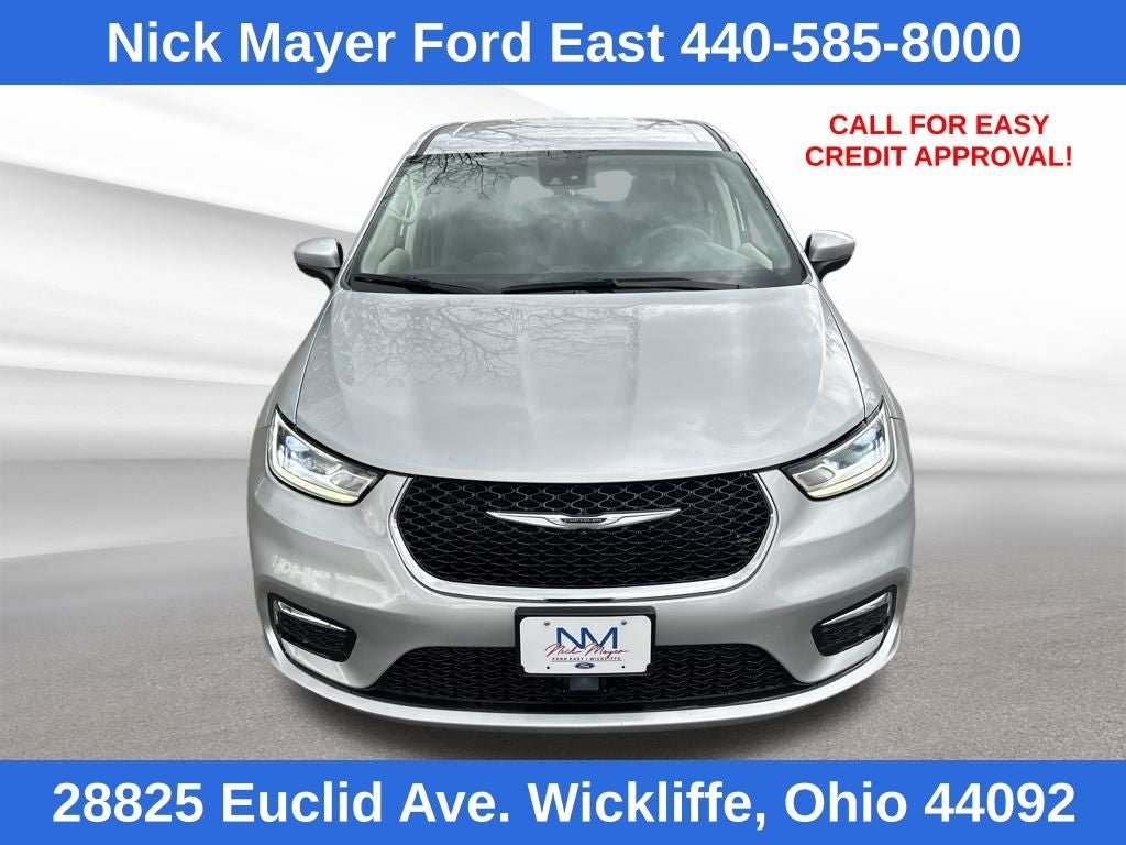 Nick Mayer Ford East Wickliffe is proud to offer this good-looking 2023 Chrysler Pacifica in Silver. This vehicle has been thoroughly inspected, ready to take home, and comes with the following features; 10.1 Touchscreen Display, 17 x 7.0 Aluminum Wheels, 3rd row seats: split-bench, 4-Wheel Disc Brakes, 6 Speakers, ABS brakes, Air Conditioning, Alloy wheels, AM/FM radio: SiriusXM, Apple CarPlay, Apple CarPlay/Android Auto, Audio memory, Automatic temperature control, Brake assist, Bumpers: body-color, Caprice Leatherette Bucket Seats, Compass, Delay-off headlights, Disassociated Touchscreen Display, Driver door bin, Driver vanity mirror, Driver's Seat Mounted Armrest, Dual front impact airbags, Dual front side impact airbags, Electronic Stability Control, Four wheel independent suspension, Front anti-roll bar, Front Bucket Seats, Front dual zone A/C, Front Fascia Air Deflectors, Front fog lights, Front reading lights, Fully automatic headlights, Google Android Auto, GPS Antenna Input, Heated door mirrors, Heated front seats, Heated steering wheel, Illuminated entry, Integrated Active Noise Cancellation, Integrated Center Stack Radio, Knee airbag, Low tire pressure warning, Memory seat, Occupant sensing airbag, Outside temperature display, Overhead airbag, Overhead console, Panic alarm, ParkView Rear Back-Up Camera, Passenger door bin, Passenger seat mounted armrest, Passenger vanity mirror, Power door mirrors, Power driver seat, Power Liftgate, Power steering, Power windows, Radio data system, Radio: Uconnect 5 w/10.1 Display, Rain sensing wipers, Rear air conditioning, Rear reading lights, Rear window defroster, Rear window wiper, Reclining 3rd row seat, Remote keyless entry, Security system, Speed control, Split folding rear seat, Spoiler, Steering wheel mounted audio controls, Tachometer, Telescoping steering wheel, Tilt steering wheel, Touring Suspension, Traction control, Trip computer, Turn signal indicator mirrors, USB Host Flip, Variably intermittent wipers, and Voltmeter. Recent Arrival! Odometer is 9308 miles below market average! 19/28 City/Highway MPG