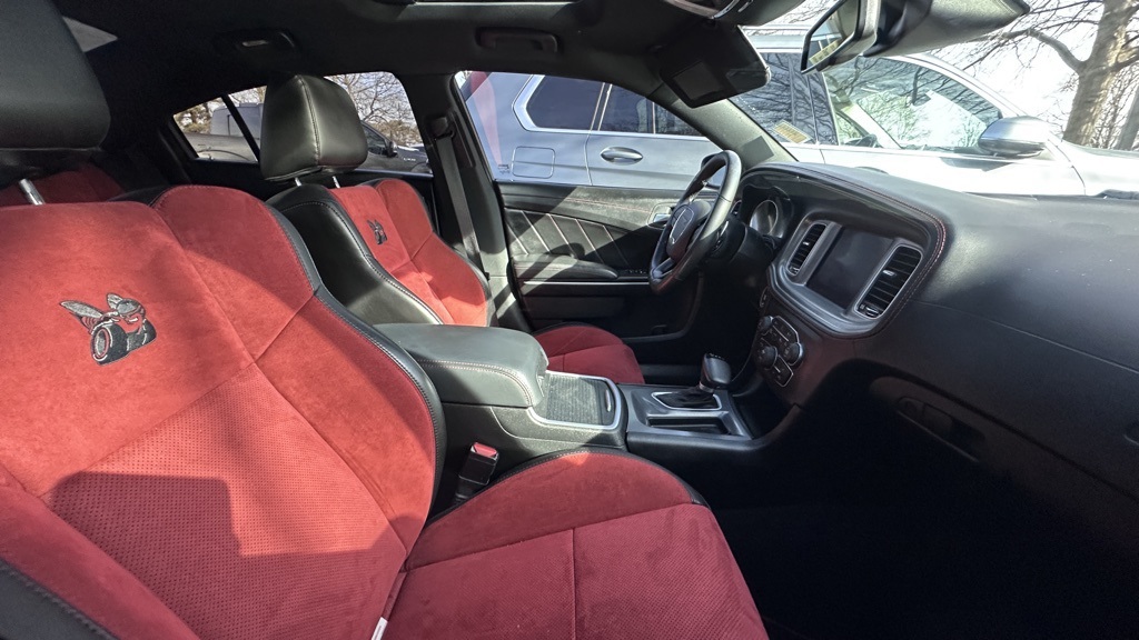 2023 Dodge Charger CARFAX One-Owner. Charger R/T Scat Pack, SRT HEMI 6.4L V8 MDS, Pitch Black Clearcoat, Ruby Red/Black w/Scat Pack Logo Nappa/Alcantara Seat, 1-Yr SiriusXM Guardian Trial, 19 harman/kardon GreenEdge Speakers, 2-Piece Shark Fin Antenna, 4G LTE Wi-Fi Hot Spot, 5-Year SiriusXM Traffic Service, 5-Year SiriusXM Travel Link Service, 8.4" Touchscreen Display, Adaptive Cruise Control w/Stop, Advanced Brake Assist, Apple CarPlay, Auto Adjust In Reverse Exterior Mirrors, Auto High Beam Headlamp Control, Auto-Dimming Exterior Driver Mirror, Black-Edged Premium Floormats, Blind Spot & Cross Path Detection, Blind Spot Memory/Power/Heat Mirror, Compass Gauge, Driver & Passenger Lower LED Lamps, Exterior Mirrors Courtesy Lamps, Exterior Mirrors w/Heating Element, For Details, Visit DriveUconnect.com, Front Overhead LED Lighting, Full Speed FWD Collision Warn Plus, Google Android Auto, GPS Antenna Input, GPS Navigation, harman/kardon Audio Group, harman/kardon GreenEdge Amp, HD Radio, Heated Front Seats, Integrated Center Stack Radio, Integrated Voice Command w/Bluetooth, Lane Departure Warning Plus, Media Hub (2 USB, AUX), Navigation & Travel Group, Plus Group, Power 2-Way Driver Lumbar Adjust, Power 2-Way Passenger Lumbar Adjust, Power Front Driver/Passenger Seats, Power Tilt/Telescope Steering Column, Premium-Stitched Dash Panel, Quick Order Package 21W Scat Pack, Radio: Uconnect 4C Nav w/8.4" Display, Radio/Driver Seat/Mirrors Memory, Rain Sensitive Windshield Wipers, Rear Armrest w/Cupholder Seat, Scat Pack Logo Nappa/Alcantara Seat, SiriusXM Traffic Plus, SiriusXM Travel Link, Surround Sound, Technology Group, USB Host Flip, Ventilated Front Seats.