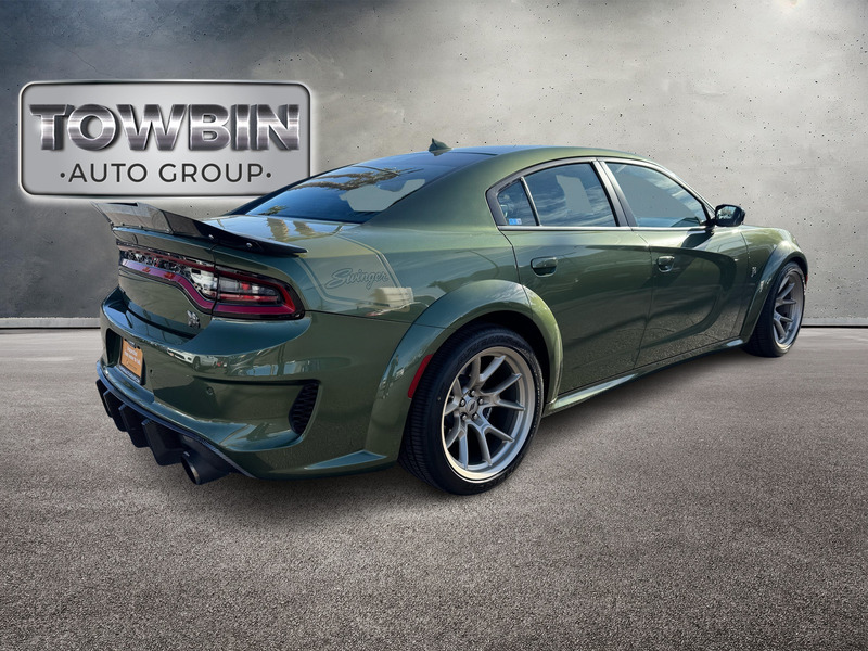 Welcome to Towbin Dodge, #1 Dodge dealer in the world! This isnt just any used car- it has been handpicked and thoroughly inspected to meet the high standards we are known for, From everyday budget options to SRT and Luxury models, weve got something for every lifestyle and price point. At Towbin we make used car buying easy, affordable, and exciting. 2023 Dodge Charger R/T Scat Pack Widebody Clean CARFAX. Odometer is 11018 miles below market average! Certified By Carfax- No Accidents And One Owner, Remainder Of Factory Warranty Still Applies, LAST CALL SWINGER SPECIAL EDITION!, Black Cloth, 1-Yr SiriusXM Guardian Trial, 2-Piece Shark Fin Antenna, 4G LTE Wi-Fi Hot Spot, 5-Year SiriusXM Traffic Service, 5-Year SiriusXM Travel Link Service, 8.4" Touchscreen Display, Adaptive Cruise Control w/Stop, Adaptive Damping Suspension, Advanced Brake Assist, All Speed Traction Control, Aluminum Interior Bezel w/Wood Look, Anti-whiplash front head restraints, Apple CarPlay, Apple CarPlay/Android Auto, Auto Adjust In Reverse Exterior Mirrors, Auto High Beam Headlamp Control, Auto-Dimming Exterior Driver Mirror, Automatic temperature control, Basil Green IP/Console/Door Stitching, Black-Edged Premium Floormats, Blind Spot & Cross Path Detection, Blind Spot Memory/Power/Heat Mirror, Body Color Fender Flares, Brake assist, Brembo 6-Pot Fixed Front Caliper Brakes, Cloth Performance Seats w/Heat, Compass Gauge, Driver & Passenger Lower LED Lamps, Dual front impact airbags, Dual front side impact airbags, Electronic Stability Control, Emergency communication system: SiriusXM Guardian, Exterior Mirrors Courtesy Lamps, Exterior Mirrors w/Heating Element, Flat-Bottom Steering Wheel, For Details, Visit DriveUconnect.com, Front dual zone A/C, Front Overhead LED Lighting, Full Speed FWD Collision Warn Plus, Garage door transmitter: HomeLink, Gold School Bee Fender Badge, Gold School Scat Pack/Bee Decklid Badge, Gold School Scat Pack/Bee Grille Badge, Google Android Auto, GPS Antenna Input, GPS Navigation, HD Radio, Heated door mirrors, Heated Front Seats, Heated front seats, Heated steering wheel, Integrated Center Stack Radio, Integrated Voice Command w/Bluetooth, Knee airbag, Lane Departure Warning Plus, Media Hub (2 USB, AUX), Nappa Alcantara Seat Trim w/Green Stitch, Navigation & Travel Group, Occupant sensing airbag, Overhead airbag, ParkView Rear Back-Up Camera, Performance Shift Indicator, Plus Group, Power Front Driver/Passenger Seats, Power Tilt/Telescope Steering Column, Power windows, Premium-Stitched Dash Panel, Quick Order Package 21V Scat Pack Widebody, Radio: Uconnect 4C Nav w/8.4" Display, Radio/Driver Seat/Mirrors Memory, Rain Sensitive Windshield Wipers, Remote keyless entry, Rhombi 2-Pc Wheel Center Cap, Satin Black Dodge Tail Lamp Badge, Scat Pack Logo Nappa/Alcantara Seat, Security system, SiriusXM Traffic Plus, SiriusXM Travel Link, Split folding rear seat, Spoiler, Swinger Exterior Vinyl Graphics, Swinger Special Edition, Technology Group, Telescoping steering wheel, Tilt steering wheel, Unique IP Badge, USB Host Flip, Variably intermittent wipers.