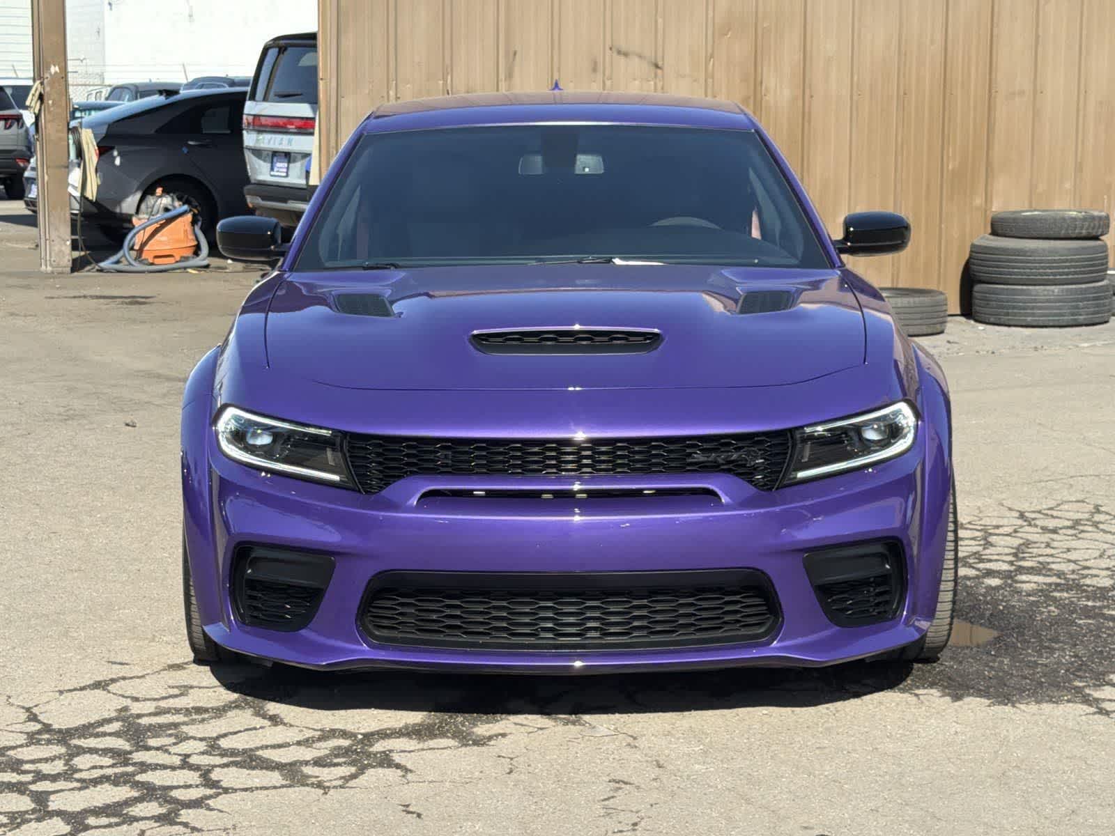 2023 Dodge Charger Plum Crazy Pearlcoat 8-Speed Automatic 6.2L 8-Cylinder SMPI Supercharged OHV Android Auto, Apple Car Play & Android Auto, Backup Camera, Bluetooth, CarPlay, Dual Powered Seats, Dual Zone Climate Control, Heated Seats, Keyless Entry, Leather Seats, Multi Zone Climate Control, Navigation System, Parking Sensors, Powered Driver Seat, Premium Sound System, Premium Wheels, Rear Spoiler, USB Port, Ventilated Seats, Charger SRT Hellcat JailBreak WideBody, 4D Sedan, 6.2L 8-Cylinder SMPI Supercharged OHV, 8-Speed Automatic, RWD, Plum Crazy Pearlcoat, Black Leather. CARFAX One-Owner. Clean CARFAX. Financing available on approved credit. Trade-ins accepted. All Vehicles are subject to prior sale. All Pricing and Advertised Prices for any/all vehicles offered for sale does not include dealer installed accessories which can be purchased for an additional cost. Images, prices, and options shown, including vehicle color, trim, options, pricing and other specifications are subject to availability, incentive offerings, current pricing and credit worthiness. Images are for illustrative purposes only.