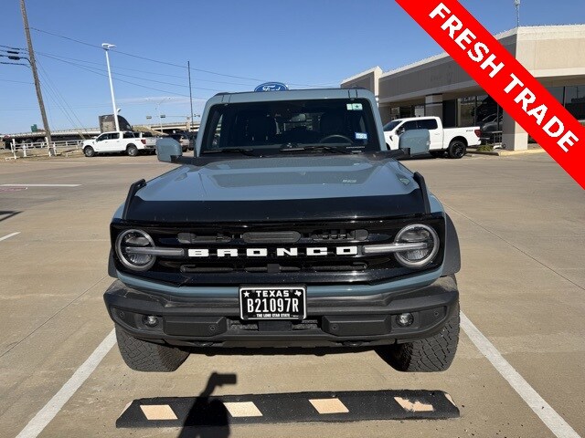 Clean Carfax. Carfax one owner, rear backup camera, Bluetooth* hands free, Apple CarPlay, leather seats, 360 degree camera, SYNC, push button start, 12" LCD Capacitive Touchscreen w/Swipe Capability, 360-Degree Camera, 4.7 Final Drive Ratio, ABS brakes, additional sound deadening, compass, electronic stability control, Equipment Group 313A High Package, front parking sensors, heated door mirrors, high clearance fender flares, high clearance suspension, illuminated entry, information on demand panel, low tire pressure warning, position-sensitive Bilstein shock absorbers, power windows, remote keyless entry, Sasquatch Package, sideview mirrors, traction control, wheels: 17" Black High Gloss-Painted Aluminum. Recent arrival! Odometer is 7849 miles below market average! You can view all of our inventory at www.bobutterford.com, or www.bobutterkia.com. Contact the Internet Sales Dept. at 903-957-5500 or sales@bobutterford.com. 2023 Ford Bronco Outer Banks. Bob Utter Ford is dedicated to your satisfaction before, during, and after your purchase. We'll go the extra mile to take care of you.