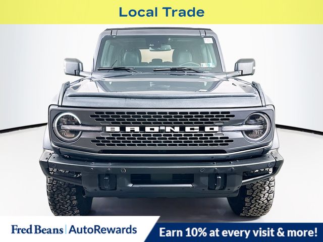 2023 Ford Bronco Badlands 2.7L EcoBoost V6 10-Speed Automatic 4WD 4D Sport Utility Carbonized Gray Metallic Local Trade, Great Service History, 3 Month / 4,000 Mile Comprehensive Warranty, Remainder of Factory Warranty, ABS brakes, Compass, Electronic Stability Control, Heated door mirrors, Illuminated entry, Low tire pressure warning, Remote keyless entry, Traction control. CARFAX One-Owner. Clean CARFAX. For better peace of mind all our used vehicles have a 127-point inspection and come with a 5-day return, 30-day exchange (As-Is vehicles are excluded). Our exclusive Auto Rewards Program provides better value with $50 Service Gift Certificate, Free Pa State Safety inspections, savings for local merchants and more. Plus, you can earn up to $2000 towards your next vehicle just by servicing with Fred Beans! As Fred Beans always says, our used cars are better because our reputation depends on it. All vehicles are subject to prior sale. Price does not include applicable tax, title, license, processing and/or documentation fees. Residency restrictions may apply.