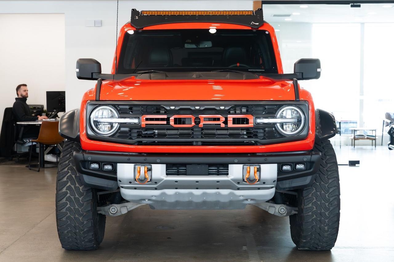 2023 Ford Raptor Bronco Code Orange 3.0L EcoBoost V6 10-Speed Automatic 4WD 17" Black & Code Orange Forged Bead Lock Wheels, Leather Trim/ Suede Seats, 10 Speakers w/Subwoofer, 2 Smart Charging USB Ports In Dashboard, Adaptive Cruise Control, Code Orange Accent Seat Belts, Connected Built-In Navigation, Equipment Group 374A Lux Package, Evasive Steering Assist, Heated Steering Wheel, Lux Package, Radio: B & O Sound System by Bang & Olufsen. Please call or text for additional details and to reserve a priority viewing of this car. Secure hold deposits available upon request. We offer financing options as well.