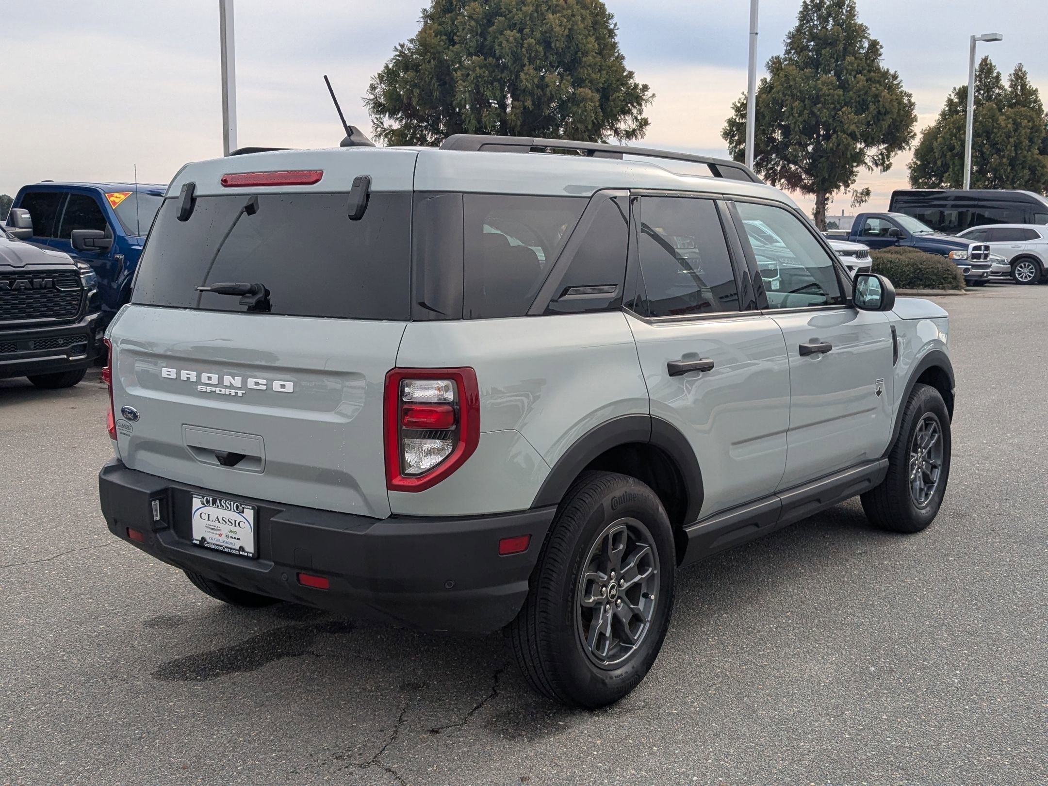 This 2023 Ford Bronco Sport Big Bend, has a Cactus Gray exterior and Ebony interior color with only 17,845 miles. Stock Number C169B. You can connect with us by calling (888) 473-5987. At Classic Chrysler Jeep Dodge Ram FIAT of Goldsboro, we're here to Serve you! Our staff is 100% dedicated to customer satisfaction and we understand that you need clear, transparent information throughout the car buying process. With our live market pricing philosophy, we offer the right cars at the right price, and the transparency to back it up!
