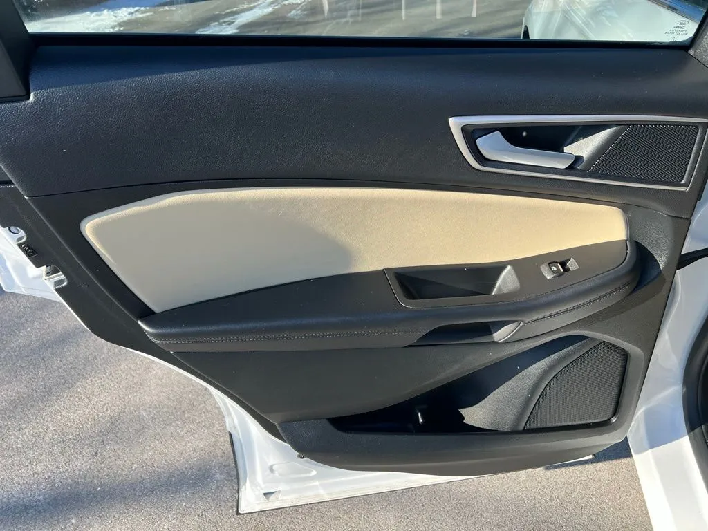 Discover the 2023 Ford Edge SEL, a stylish and versatile SUV that combines advanced technology with impressive performance. This used model features a sleek Oxford White exterior complemented by a refined Dune interior, offering a sophisticated look and comfortable ride for up to five passengers. With only 30,457 miles on the odometer, this vehicle has been meticulously maintained and is ready to deliver reliable transportation. Powered by a turbocharged 2.0-liter four-cylinder engine producing 250 horsepower and 280 lb-ft of torque, paired with an 8-speed automatic transmission, the Edge SEL ensures smooth acceleration and efficient fuel economy of up to 28 highway MPG. Its all-wheel-drive system provides confident handling in various driving conditions, making it a perfect choice for daily commutes or weekend adventures. Equipped with a comprehensive suite of driver-assistance features, the Ford Edge SEL prioritizes safety and convenience. The backup camera and parking sensors assist with maneuvering, while lane keep assist and electronic parking brake add to the vehicle's safety profile. Keyless entry, push-button start, and programmable safety keys streamline your driving experience, ensuring both security and ease of use. These advanced safety features demonstrate Ford’s commitment to protecting its occupants and providing peace of mind during every journey. The Ford Edge SEL offers a cutting-edge infotainment experience centered around a large 12-inch touchscreen, providing intuitive access to various functions. FordPass Connect compatibility allows seamless smart device app integration, enabling remote start, vehicle locate, and other features. Hands-free phone calls and voice-operated radio and messaging systems enhance connectivity without distraction. The touch screen display supports for connected in-car apps through app marketplace integration, while electronic messaging assistance—both read and voice operated—keeps you connected on the go. With six speakers, the system ensures clear, immersive sound quality for all your entertainment needs. This SUV features auto start/stop technology that improves fuel efficiency and reduces emissions, making it an environmentally conscious choice. The on-demand all-wheel-drive system provides optimal traction and stability, adapting seamlessly to changing road conditions. Whether navigating city streets or tackling rougher terrain, the Ford Edge SEL delivers confident and responsive performance, all while maintaining a smooth, comfortable ride.