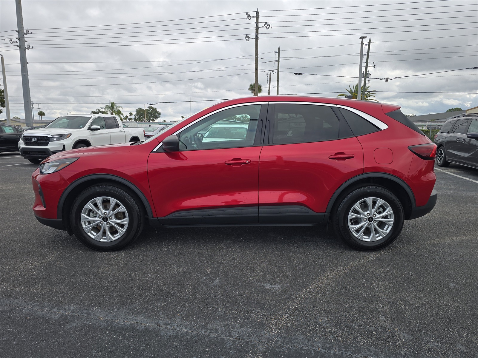 Stand out on the road with the 2023 Ford Escape Active in striking Rapid Red Metallic. This compact SUV combines bold style, practical versatility, and modern technology, making it an ideal choice for daily commuting, weekend adventures, or family outings. The Escape Active’s exterior commands attention with its vibrant red finish that highlights sleek body lines and sculpted contours. Signature black trim accents around the grille, wheel arches, and windows add a sporty edge, while 17-inch Shadow Silver aluminum wheels complete the dynamic look. The power liftgate provides convenient access to cargo, making loading groceries, gear, or luggage effortless. Under the hood, the Escape Active features a 1.5-liter EcoBoost engine paired with an 8-speed automatic transmission. Smooth and responsive, it delivers balanced performance for city streets, highway drives, and light off-road conditions. Front-wheel drive comes standard, with all-wheel drive available for added confidence in varied weather or road conditions. Step inside, and you’ll find a thoughtfully designed cabin that blends comfort with practicality. Power-adjustable front seats, dual-zone climate control, and a 60/40 split-folding rear bench ensure both driver and passengers enjoy a flexible, comfortable ride. The 8-inch SYNC touchscreen keeps you connected with navigation, entertainment, and smartphone integration, while intuitive controls make every journey simple and enjoyable. Safety is a priority, with the Ford Co-Pilot360 suite providing blind-spot monitoring, lane-keeping assist, pre-collision assist with automatic emergency braking, and a backup camera. Every trip feels secure and confident, whether commuting through busy streets or cruising on the highway. With its bold color, versatile design, modern amenities, and reliable performance, the 2023 Ford Escape Active in Rapid Red Metallic is a well-rounded compact SUV ready to enhance your everyday driving experience. Don’t just drive—make a statement.