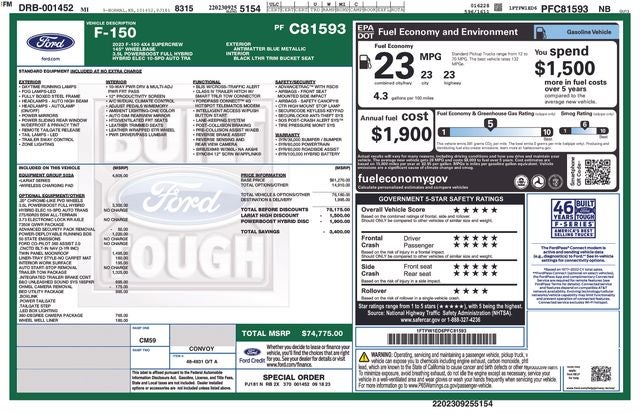 Discover the ultimate in power, capability, and comfort with this exceptional 2023 Ford F-150 Lariat. Boasting a 3.5L PowerBoost Full-Hybrid V6 engine and 4-wheel drive, this truck is ready to tackle any task with ease. Enjoy the convenience of features like a backup camera, Bluetooth® connectivity, and our exclusive Lifetime Warranty. This F-150 Lariat is a true workhorse, combining exceptional capability with unparalleled comfort and convenience. The powerful 3.5L PowerBoost Hybrid V6 engine delivers impressive fuel efficiency, while the suite of advanced safety and technology features keep you connected and protected on the road. Elevate your driving experience with the exceptional 2023 Ford F-150 Lariat. With its exceptional performance, cutting-edge technology, and premium amenities, this truck is the perfect companion for both work and play. Visit our showroom today to take a closer look and experience the power of the F-150 for yourself.